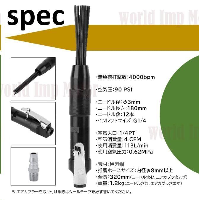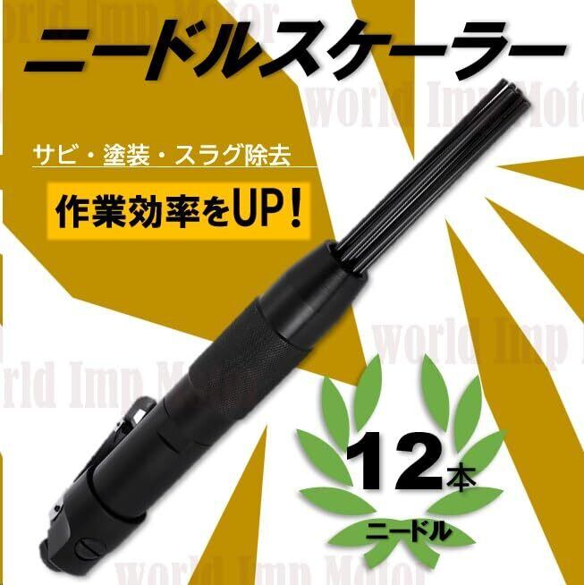 ニードル スケーラー エアハンマー ジェット タガネ 錆除去ガン 4400rpm 12本付き エア工具 ニードルスラグ 錆落とし 塗装落とし バリ取り 取付口 G1/4 DIY ツール ブラック