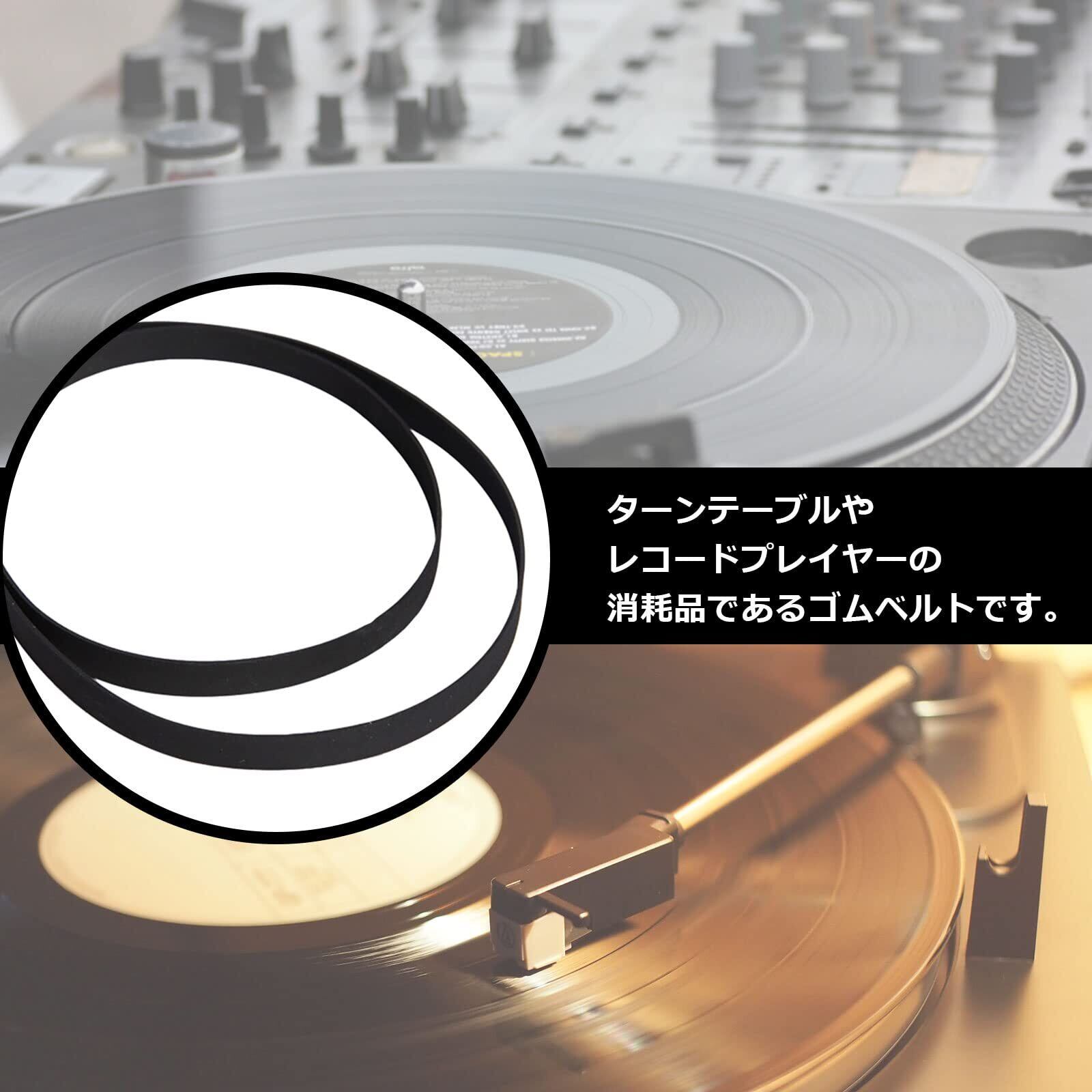 ゴムベルトは、全周表記のサイズです。ゴム製のため、少し伸びることを考慮したサイズ選びをおすすめします。経年劣化による不具合も、ベルト交換で解消できる場合があります。ターンテーブルの性能を維持するためにも、適切なサイズのベルトを選択してください。