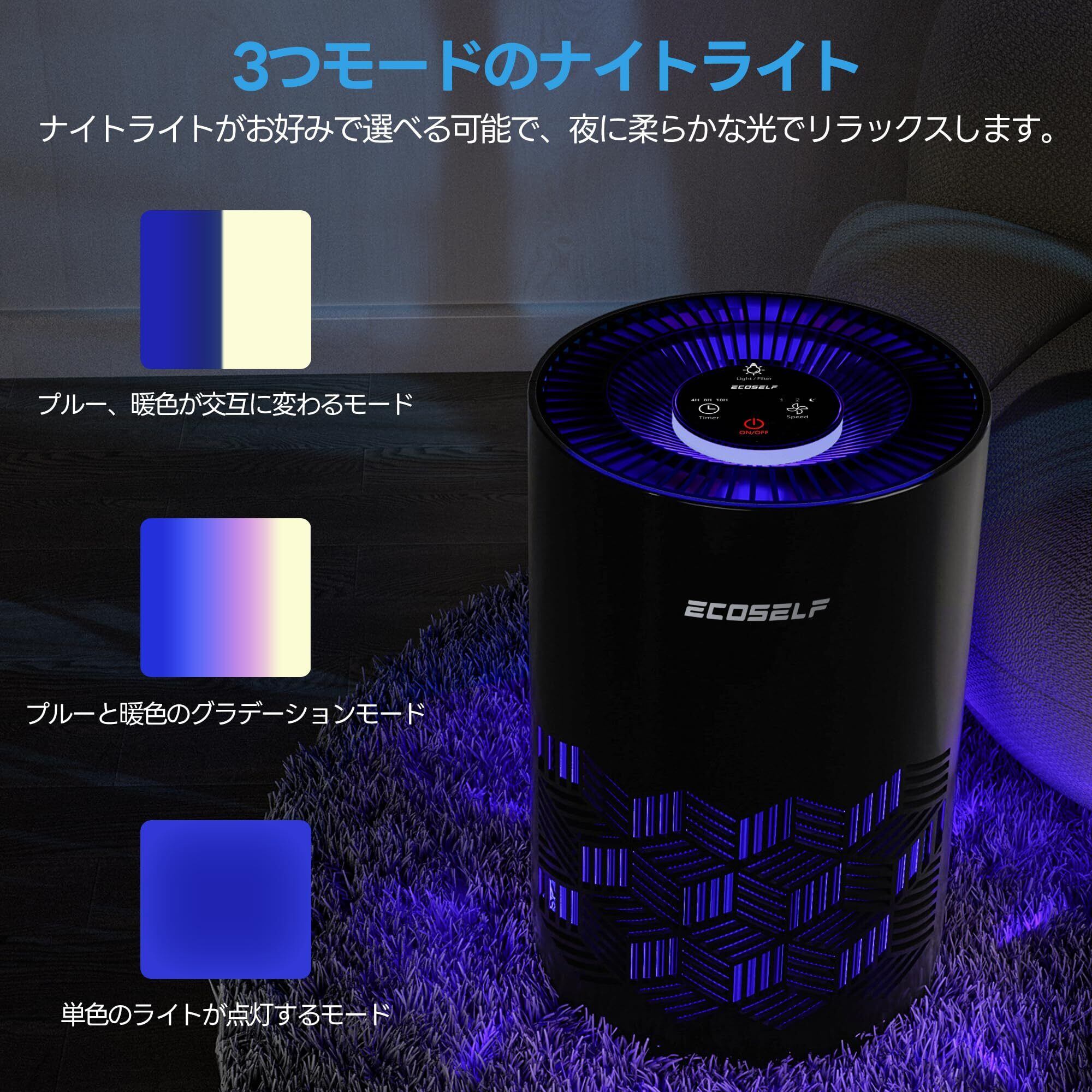 ECOSELF 空気清浄機 小型 【2025新モデル Hepaフィルター 1h5回部屋洗浄 節電 】12畳 極静音 軽量 脱臭/PM2.5/花粉/ハウスダスト/ほこり/ペットの毛/カビ/除菌/アレルギー/梅雨対策 多様な雰囲気ライト 3段風速 3段タイマー 活性炭フィルター 日本国内PSE&METI認証済 黒色