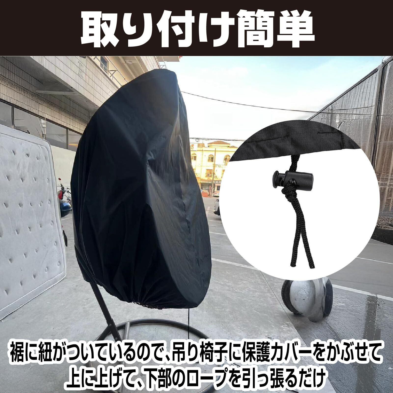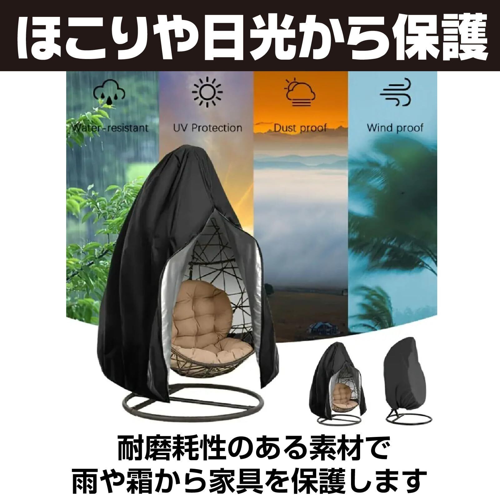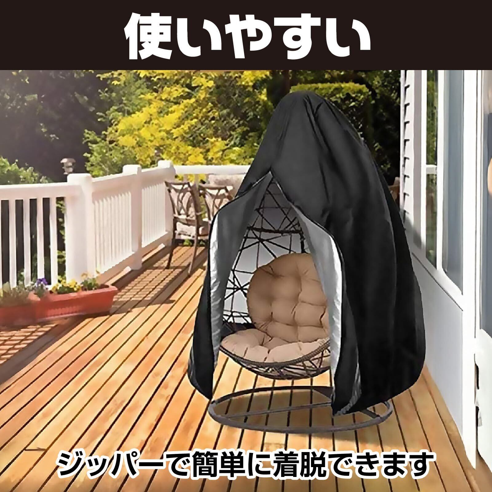 CAWKAY パティオハンギングエッグチェアカバー アウトドアチェアカバー 屋外用家具カバー ジッパー 防風 防水 防塵 高耐久 耐候性 (ブラック ジッパー有り)