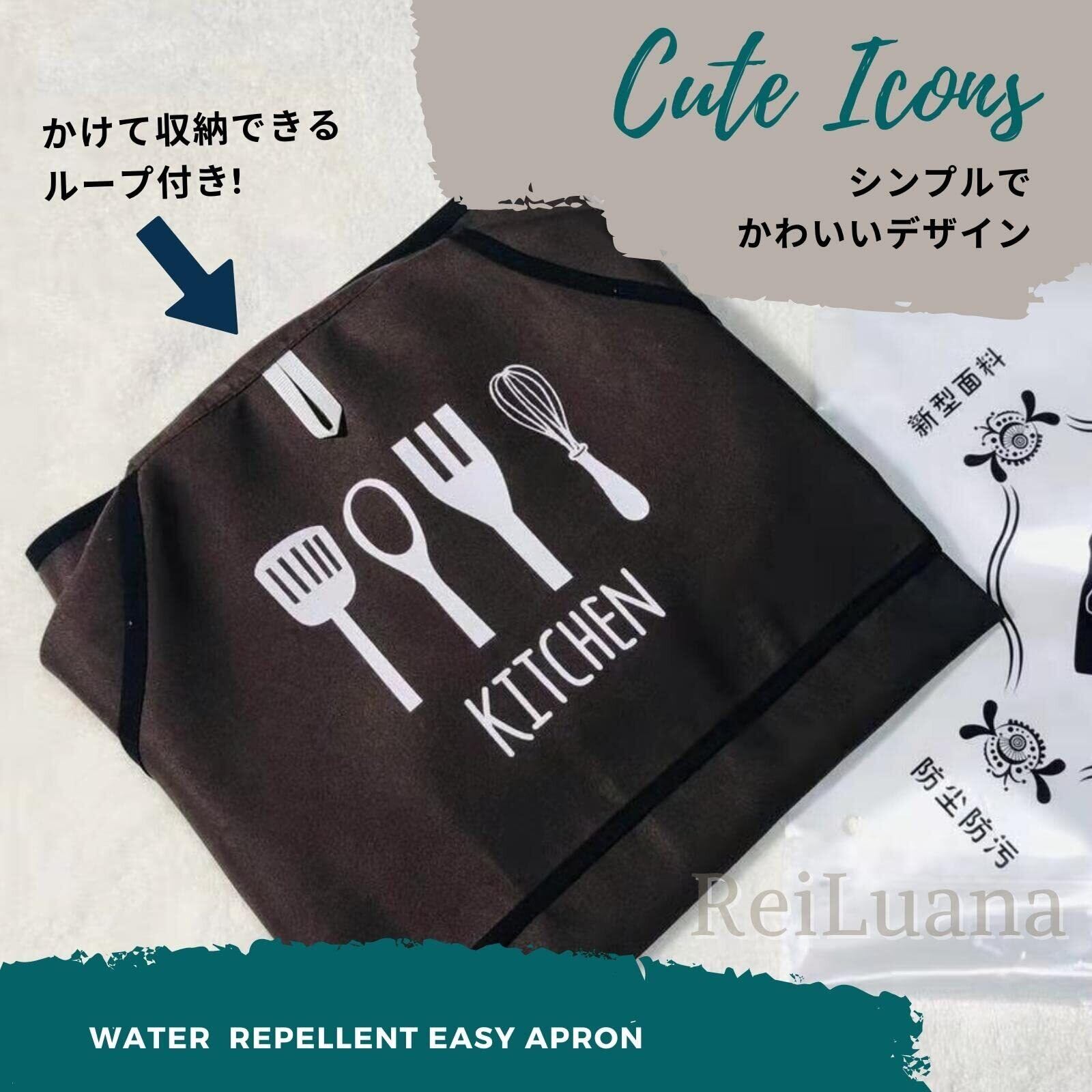 [ReiLuana] [レイルアナ] エプロン ワンタッチ 家庭 防水 撥水 男女 兼用 前掛け ポケット カフェ キッチン 簡単 プレゼント