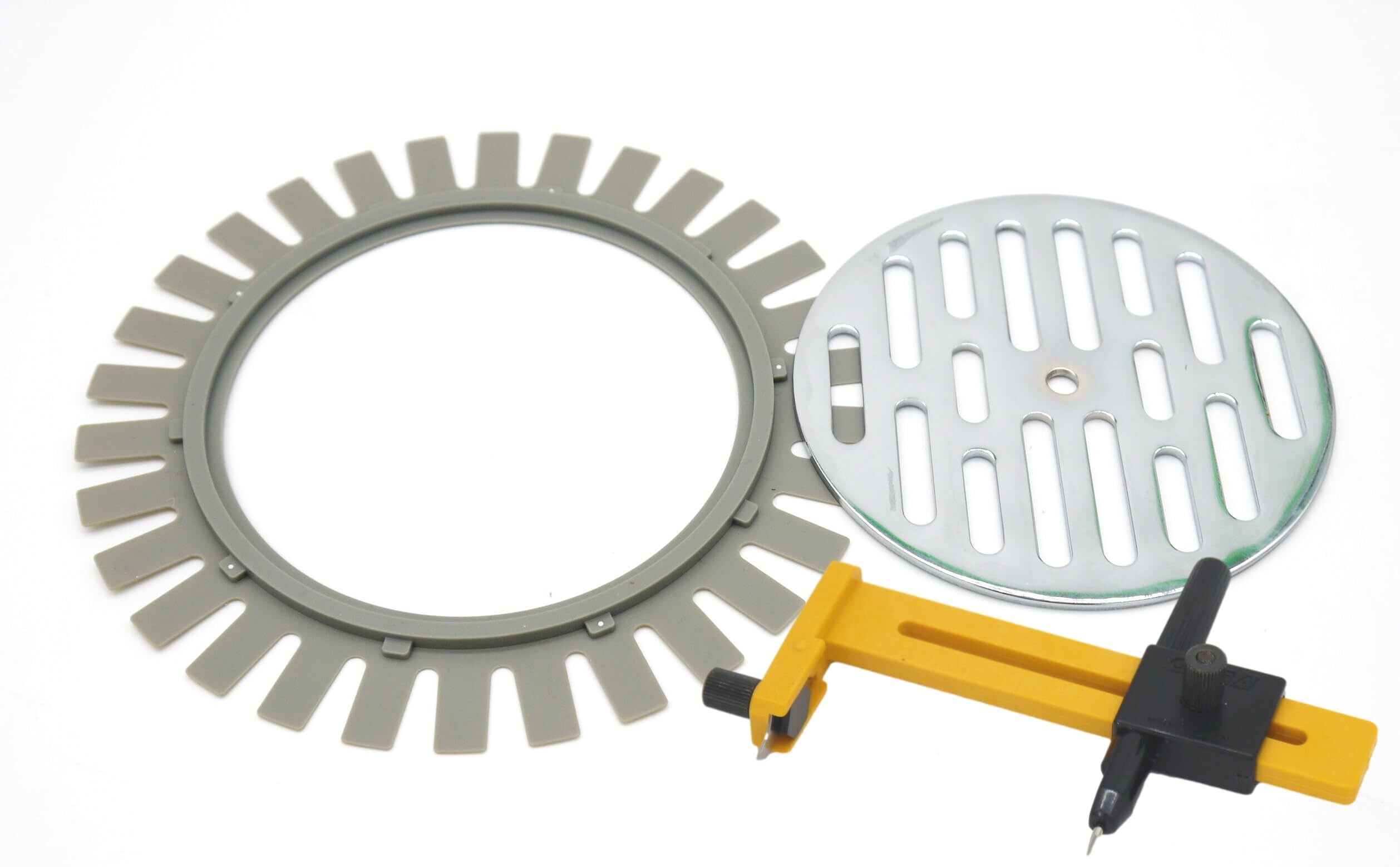 フクビ あんから用目皿ベースと、それにピッタリおさまるステンレス目皿、丸くカットするサークルカッターのセットです。