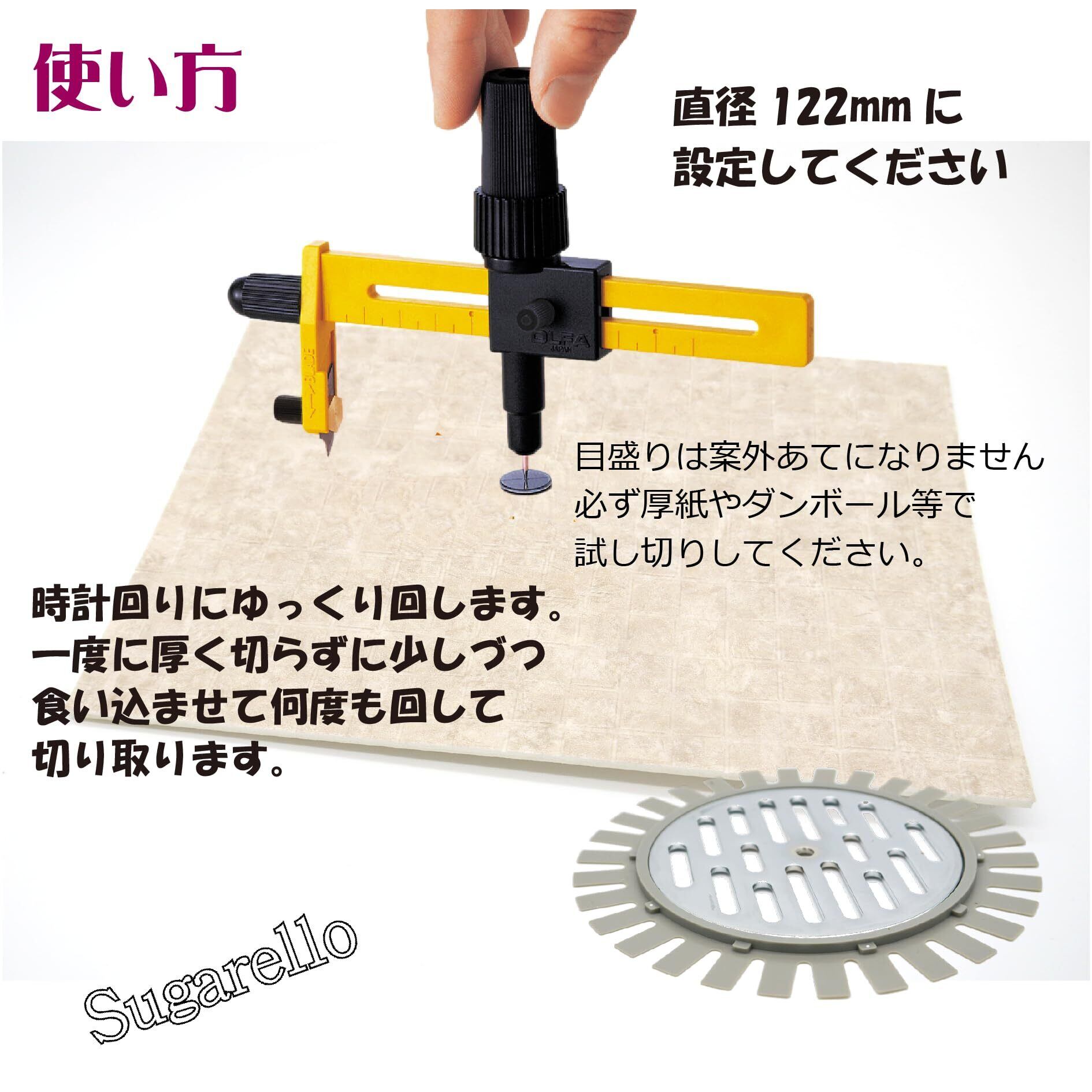 刃の出は5mm。直径は122mmにセットしてください。目盛りは案外あてになりませんので、必ず厚紙等で試し切りしてサイズを確認してください。