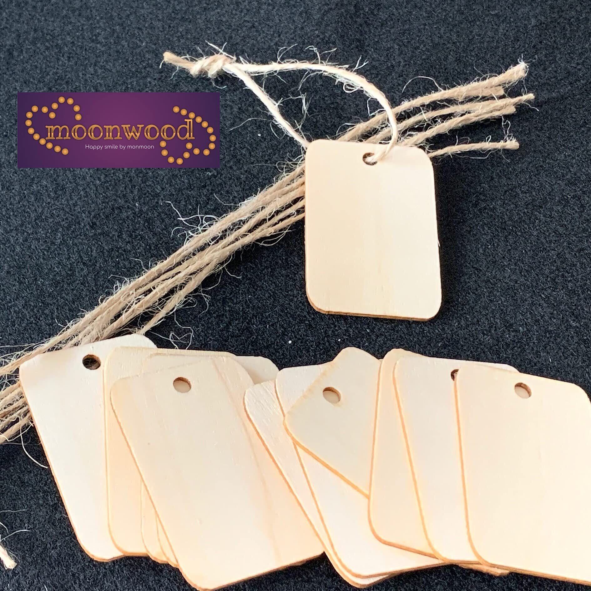 moonwood 木製 カード 50枚 タグ 木材 チップ ネームタグ 天然木 メッセージカード 紐