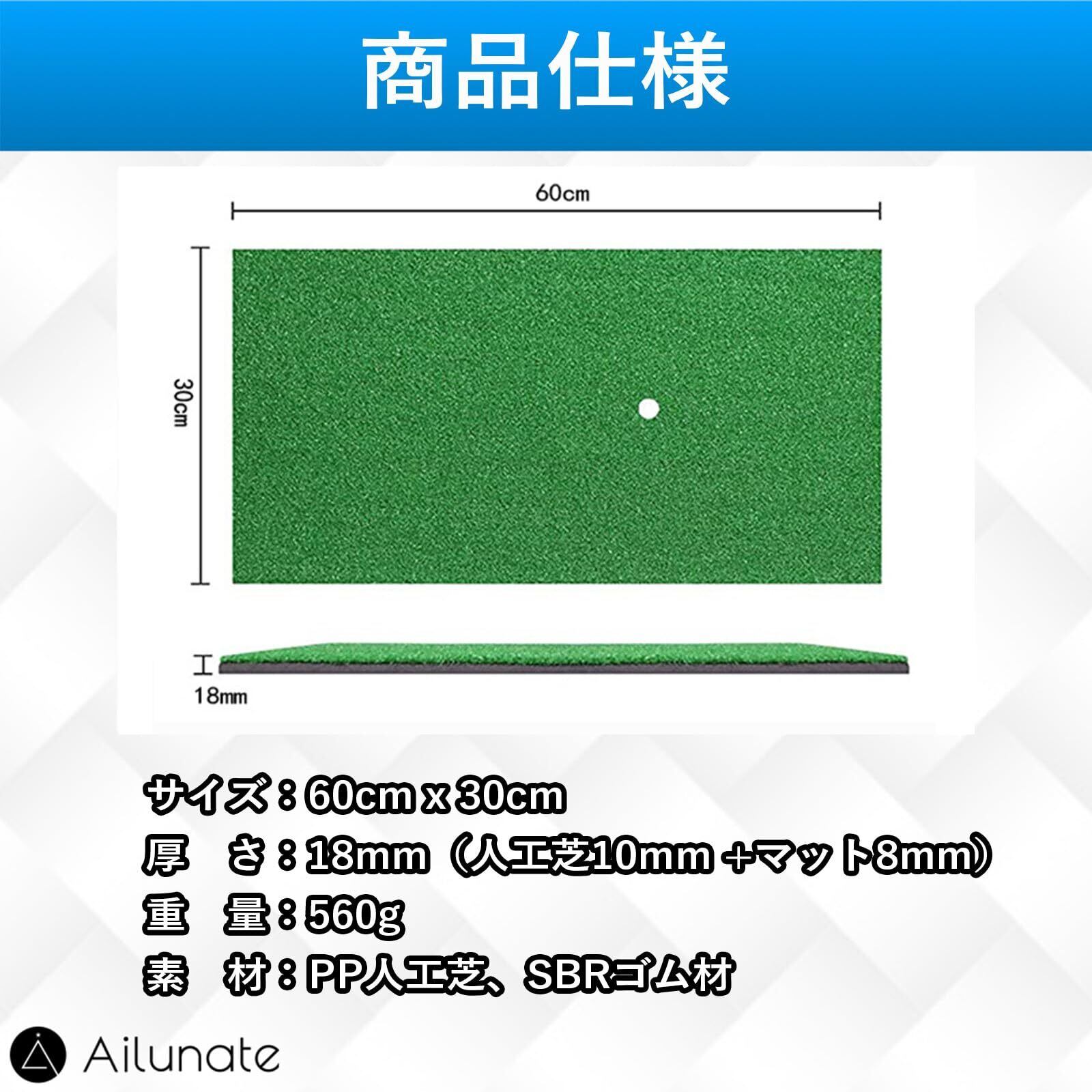 Ailunate ゴルフマット ゴルフ 練習 マット 屋外 室内 素振り ドライバー アイアン スイング 練習用 人工芝 SBR 30×60cm
