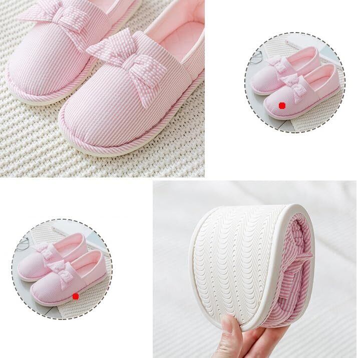 [レリカ] リボン 軽量 ルームシューズ スリッパ 室内 履き かかとあり 滑り止め 歩きやすい シューズ 女性 用 レディース