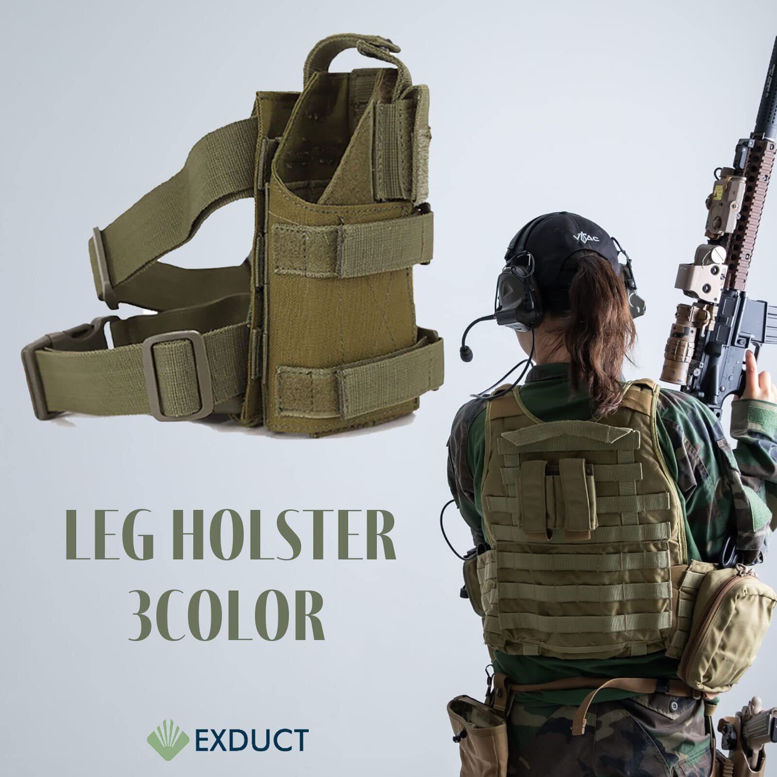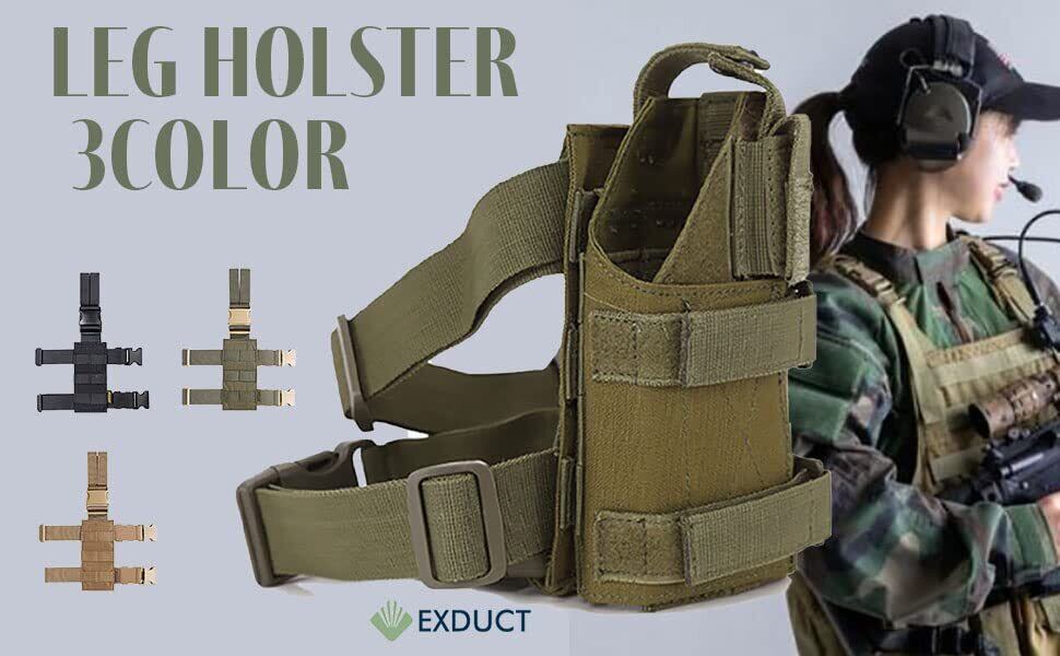各種ベルトでしっかり固定できます。ナイロン製のレッグホルスターですので、雨と汚れに強く長くご使用いただけます。3色あるので迷彩に合わせてお選びいただけます。
