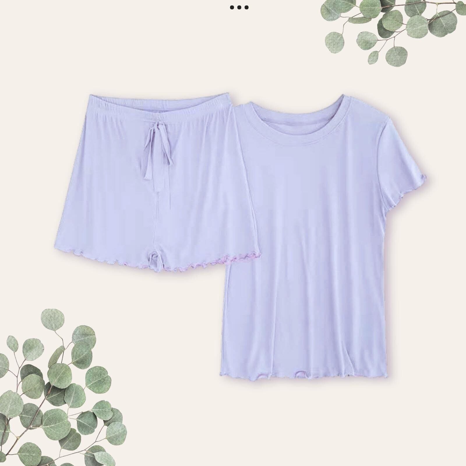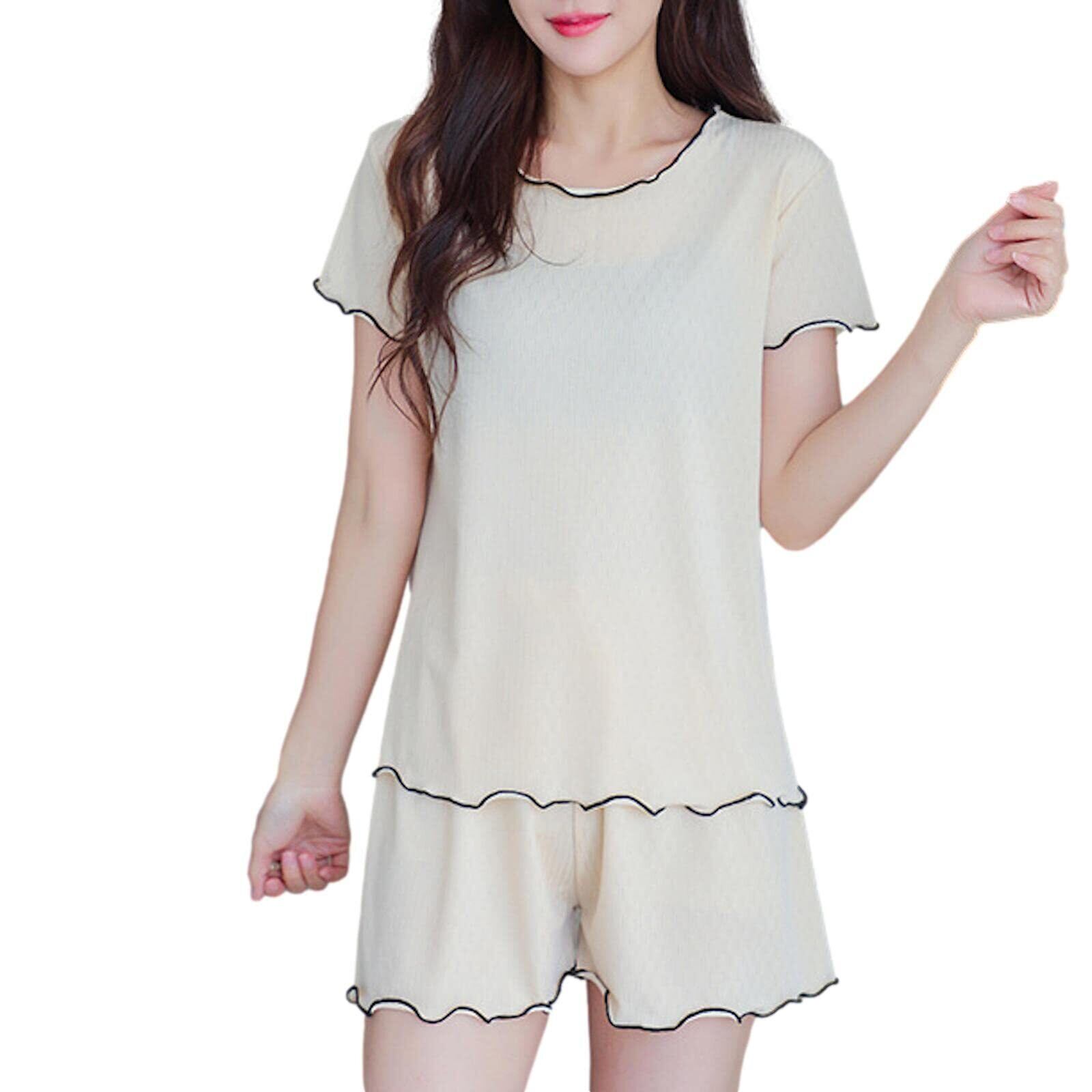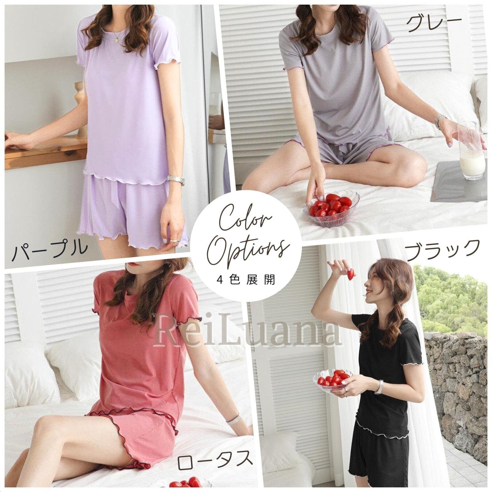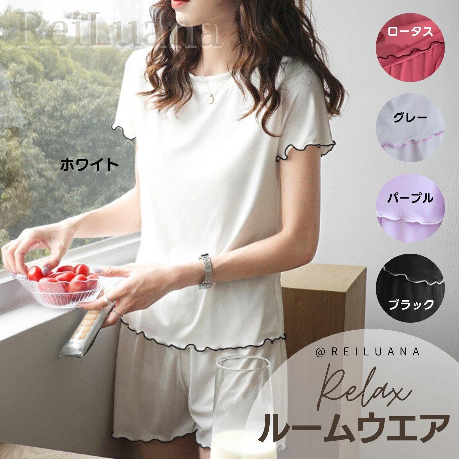[ReiLuana] ルームウエア パジャマ レディース 半袖 短パン 上下 セット 部屋 着 丸首 無地 薄手 tシャツ