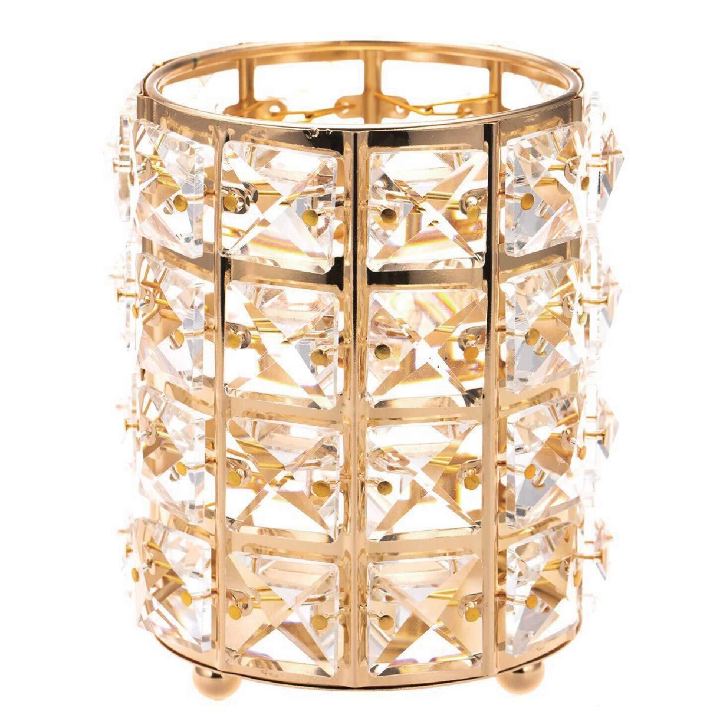 ColorfylCoco(カラフィルココ) コスメ収納 メイクブラシケース ブラシスタンド クリスタルブラシホルダー 化粧ブラシホルダー 円筒型 ペン立て ゴールド クリスタル メイクブラシ 卓上 収納 (ゴールド)