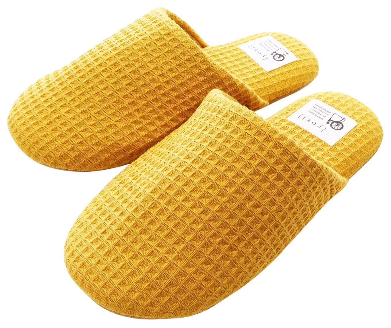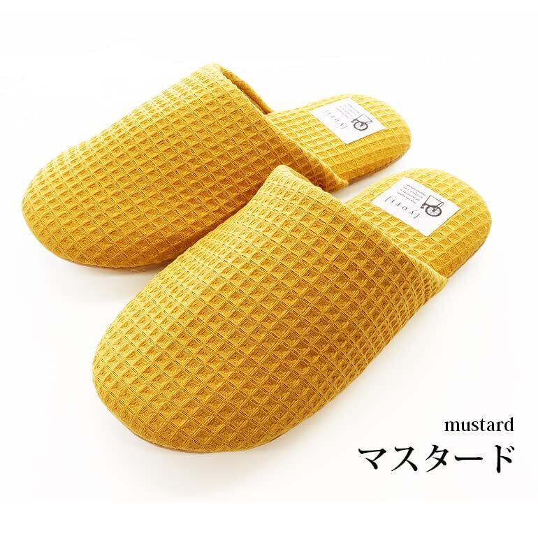 コットンワッフルが気持ち良い洗えるソフトスリッパ綿100%のコットンワッフル素材のスリッパは、中敷き甲裏もコットンなので、素足に履いて心地いいアイテム