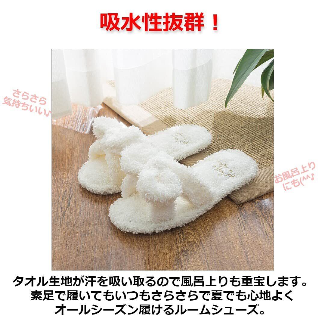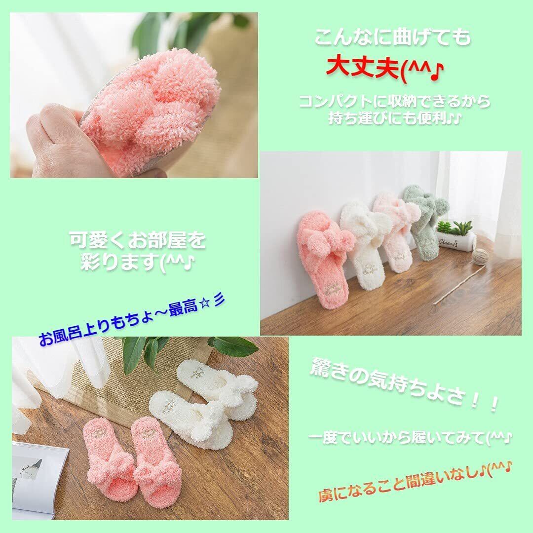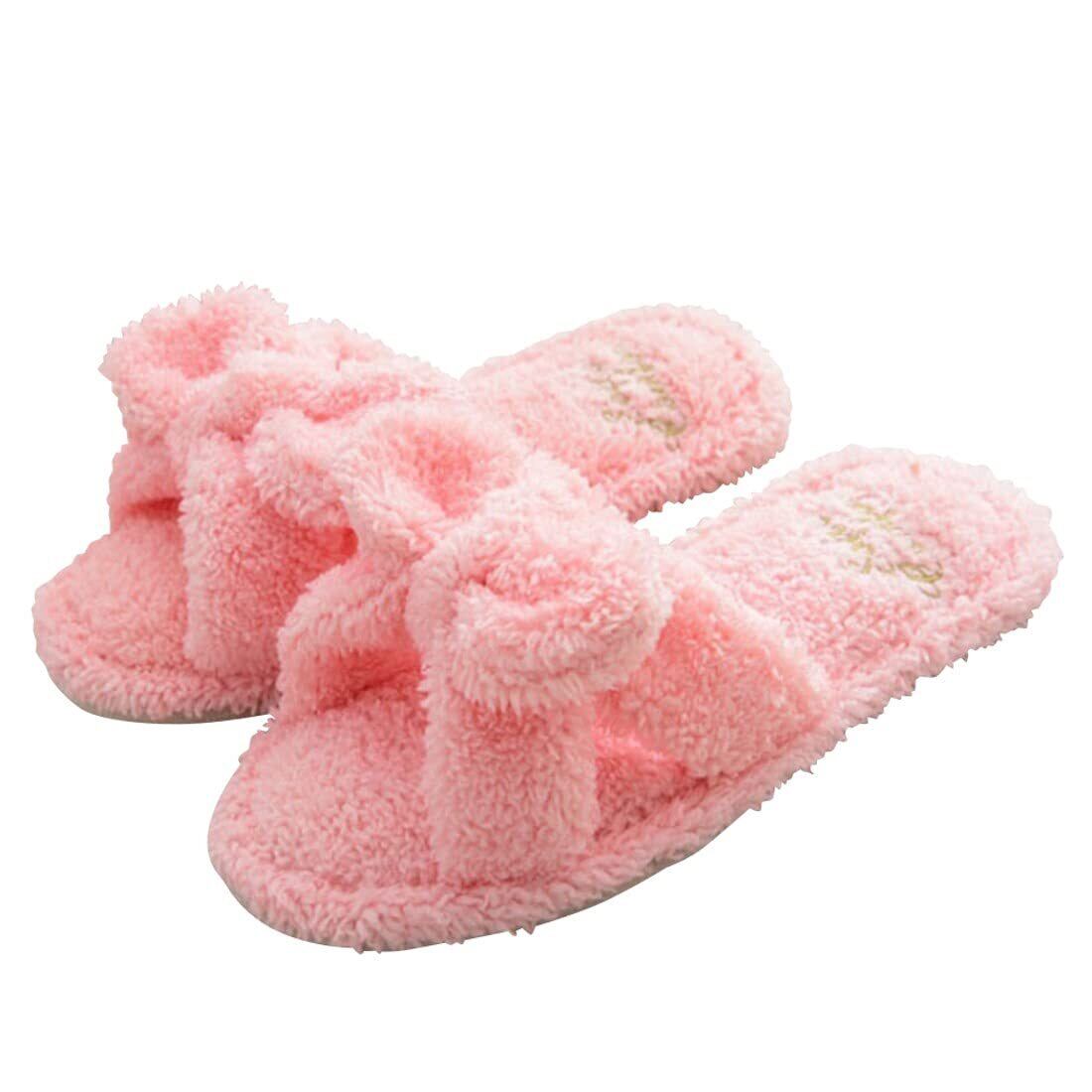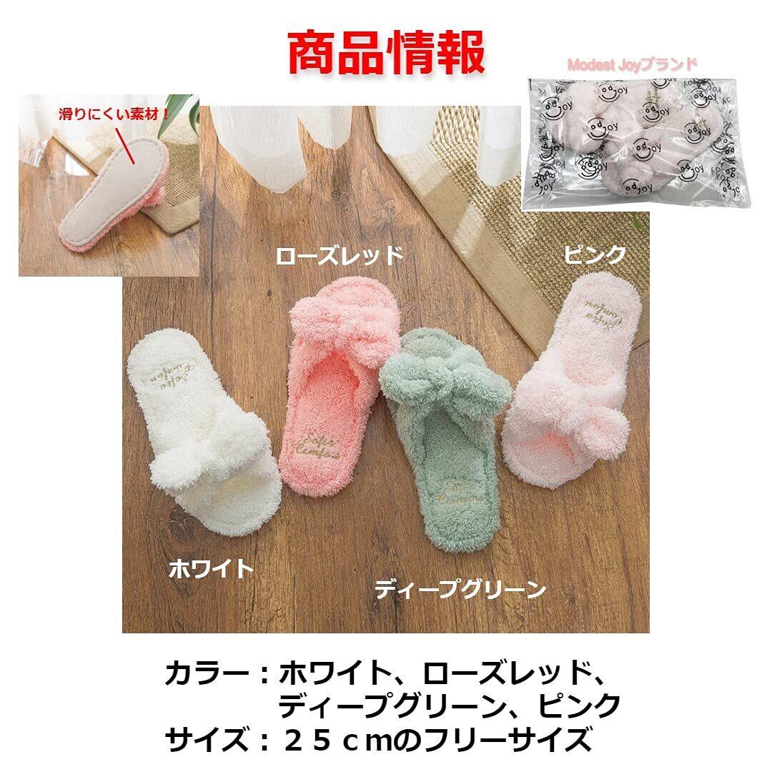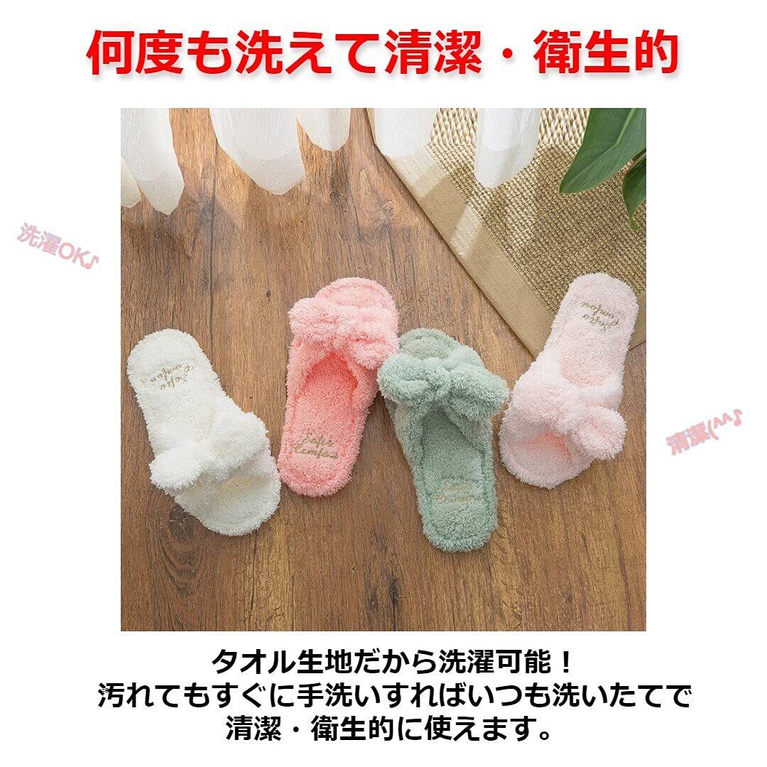 [Modest Joy] 洗える リボン スリッパ ルームシューズ レディース モコモコ タオル地 清潔 おしゃれ かわいい 持ち運び 刺繍 レディース