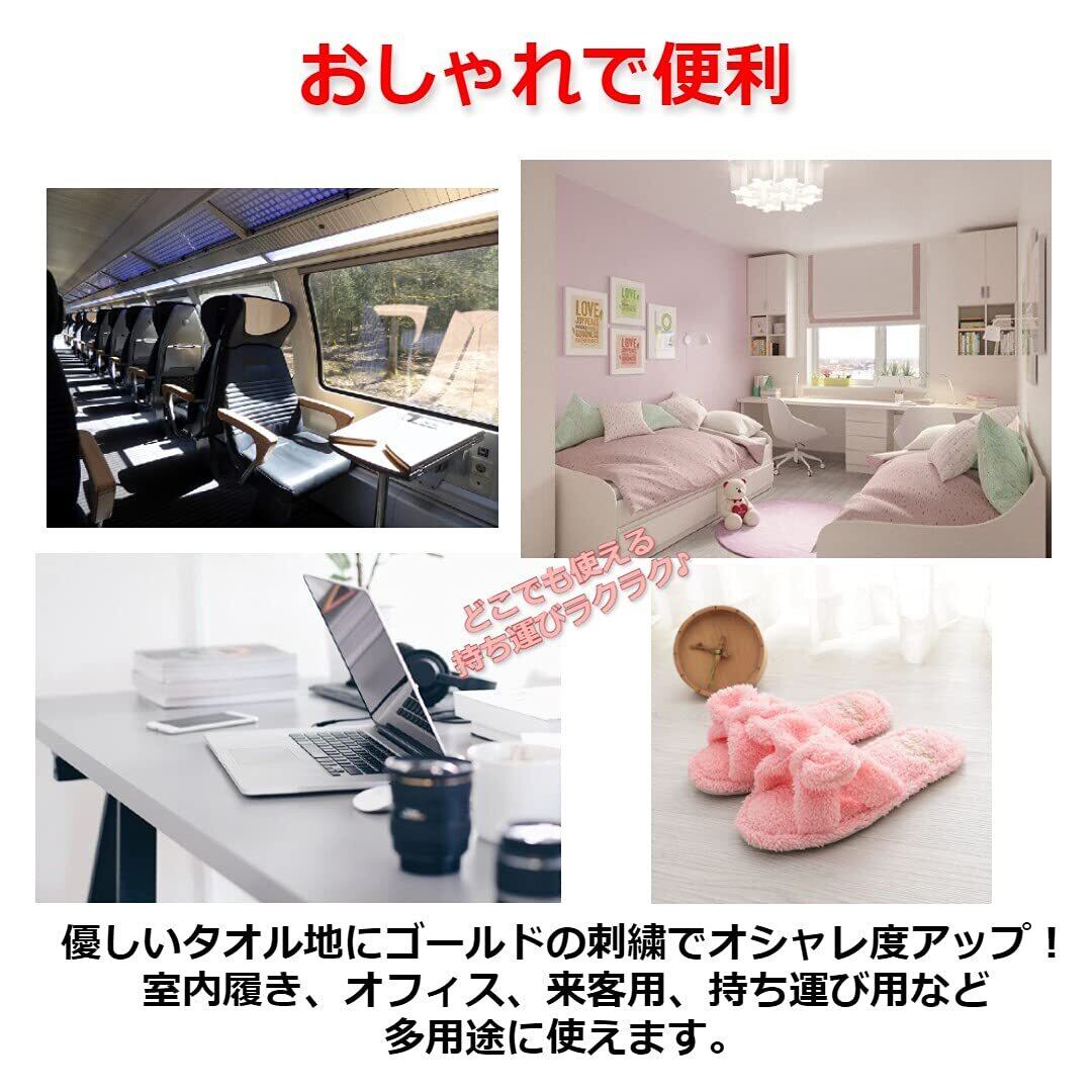 【おしゃれで便利】優しいタオル地にゴールドの刺繍でオシャレ度アップ!室内履き、オフィス、来客用、持ち運び用など多用途に使えます。
