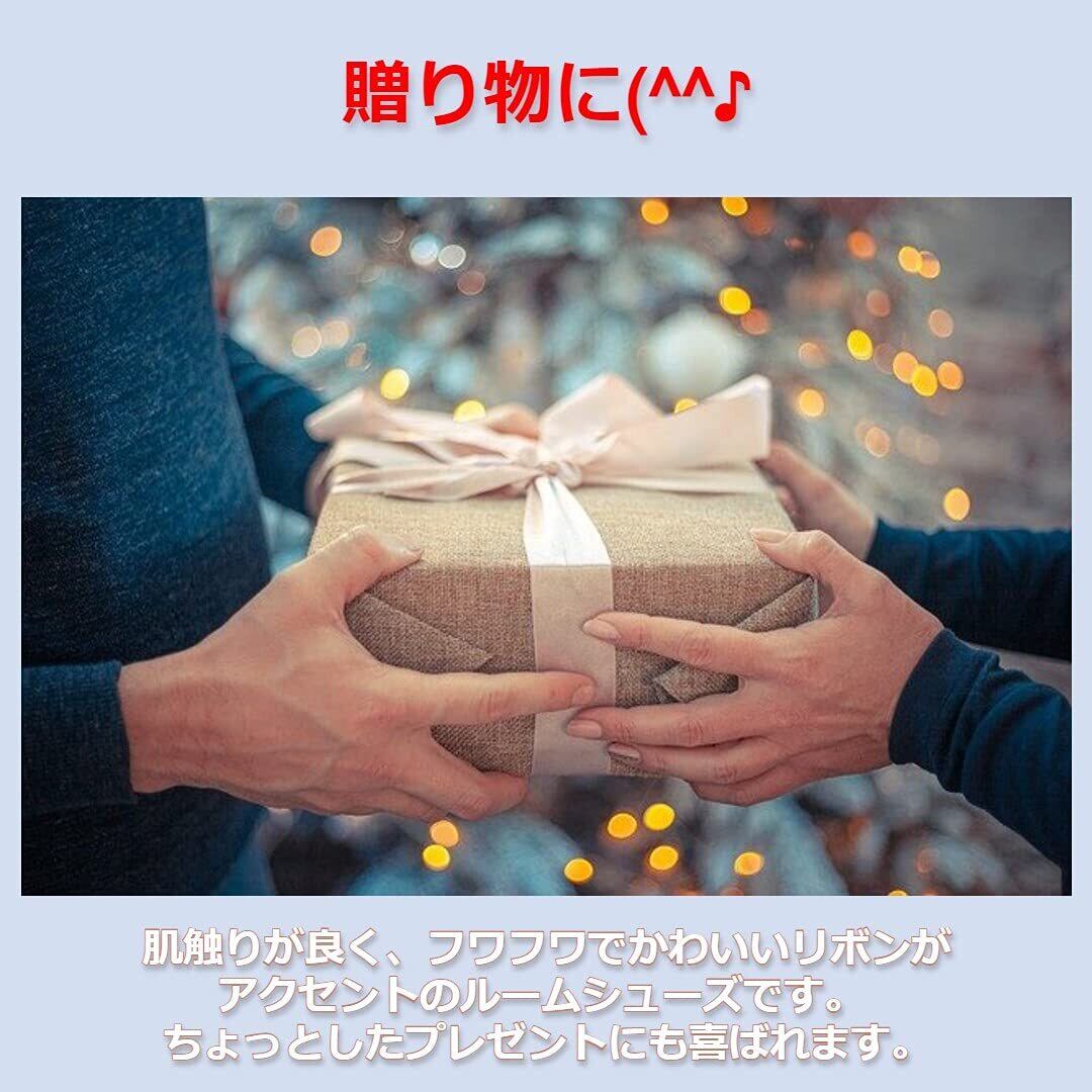 【贈り物に】肌触りが良く、フワフワでかわいいリボンがアクセントのルームシューズです。 ちょっとしたプレゼントにも喜ばれます。