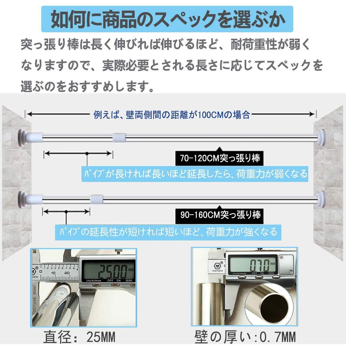 YOUDUO突っ張り棒 強力つっぱり棒 ツッパリ棒 幅50-240CM 浴室用ステンレス超強力伸縮棒 取付寸法 115~190cm 耐荷重60~15kg