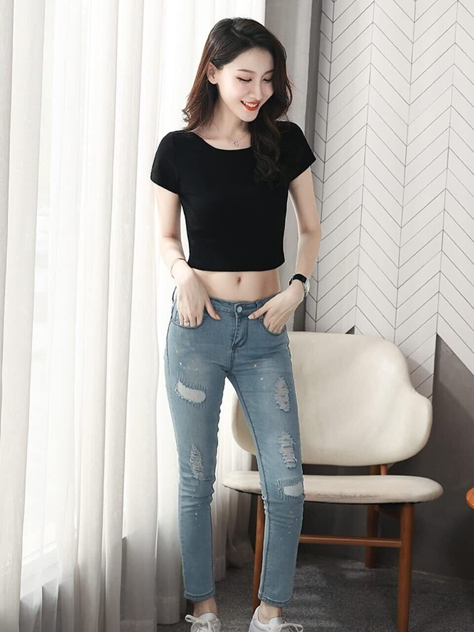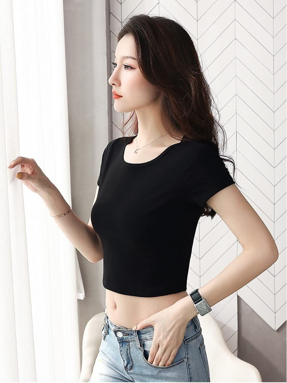 ショート丈半袖Tシャツ。自分らしさを出せるトップスです