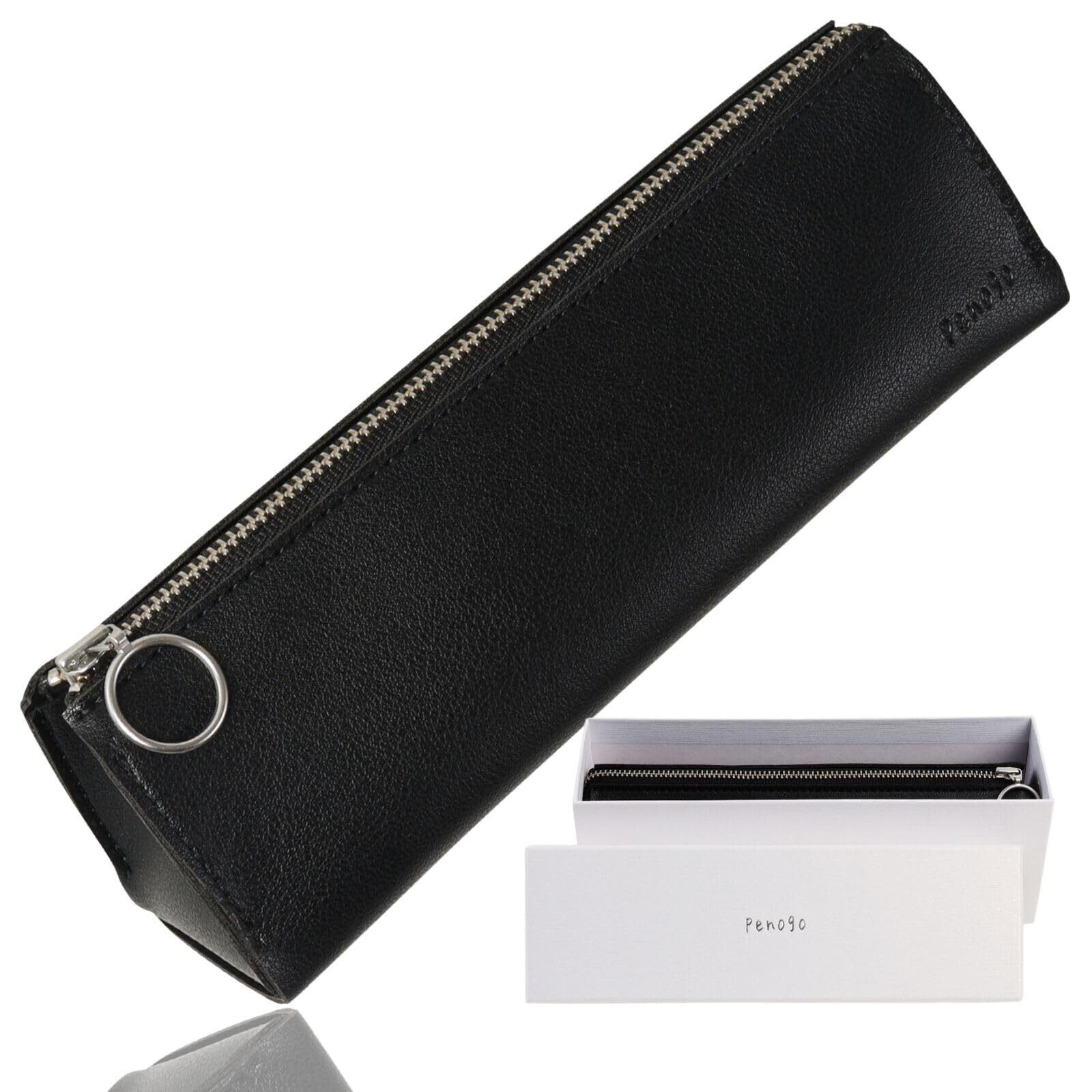 【文具のとびら掲載】 penogo 筆箱 シンプル ペンケース スリム おしゃれ 大人 女性 YKKファスナー コンパクト (ブラック)