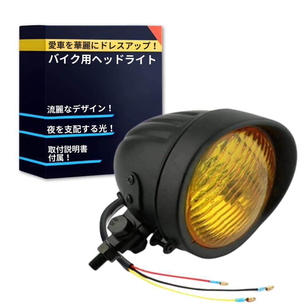 TaJiMy ベーツライト ヘッドライト バイク バイザー 汎用 ビンテージ カフェレーサー チョッパー オールドスクール (本体:ブラック/レンズ:イエロー)