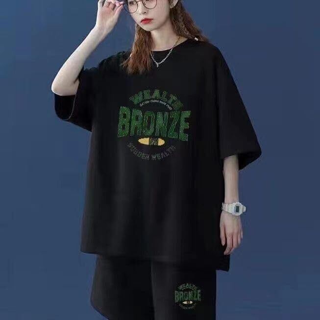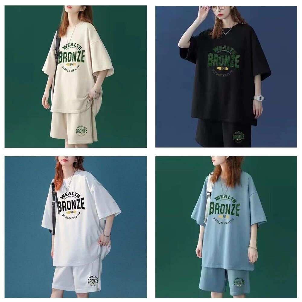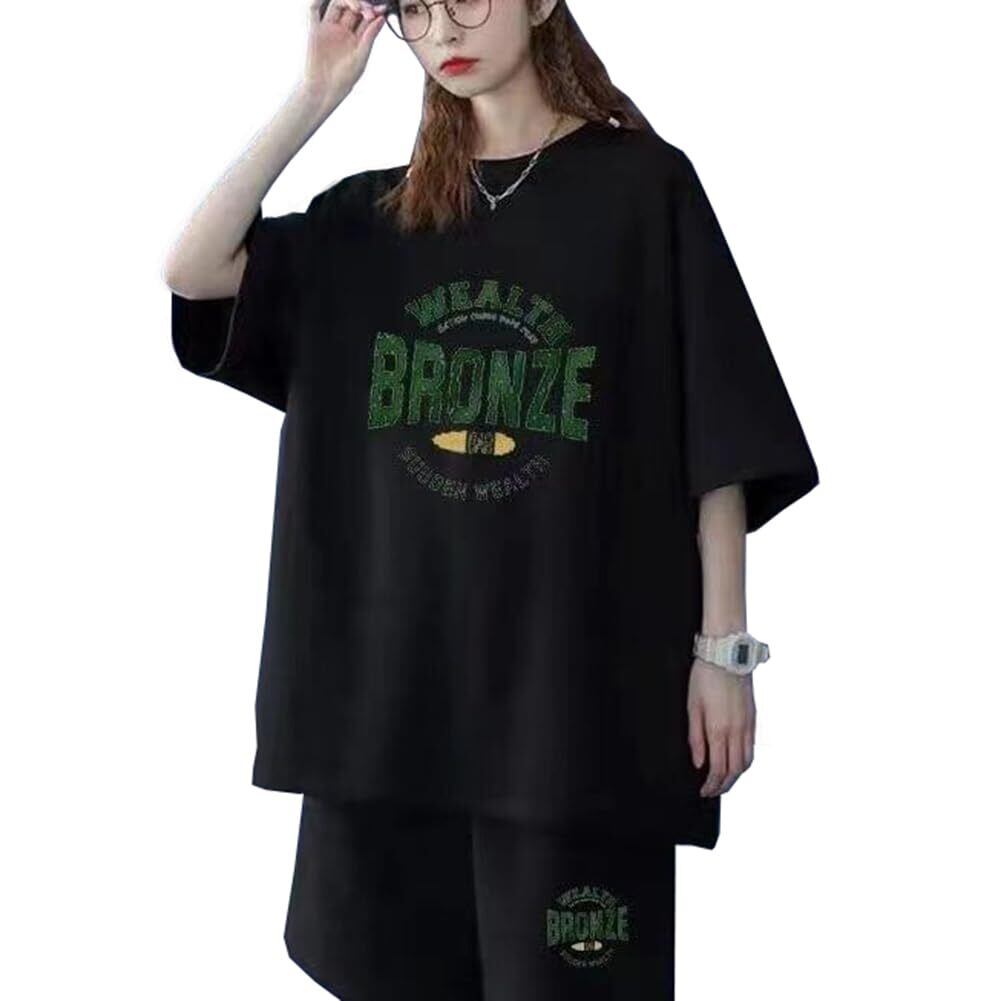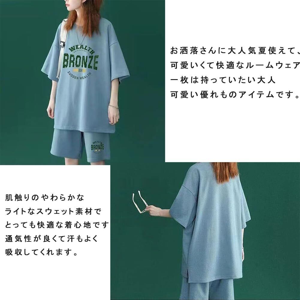 [NOLCCTN] スウェット セットアップ ジャージ 上下 2点セット 半袖 tシャツ ショートパンツ ゆったり 大きいサイズ 体型カバー スポーツウェア ルームウェア レディース 春 夏 秋 LHL143