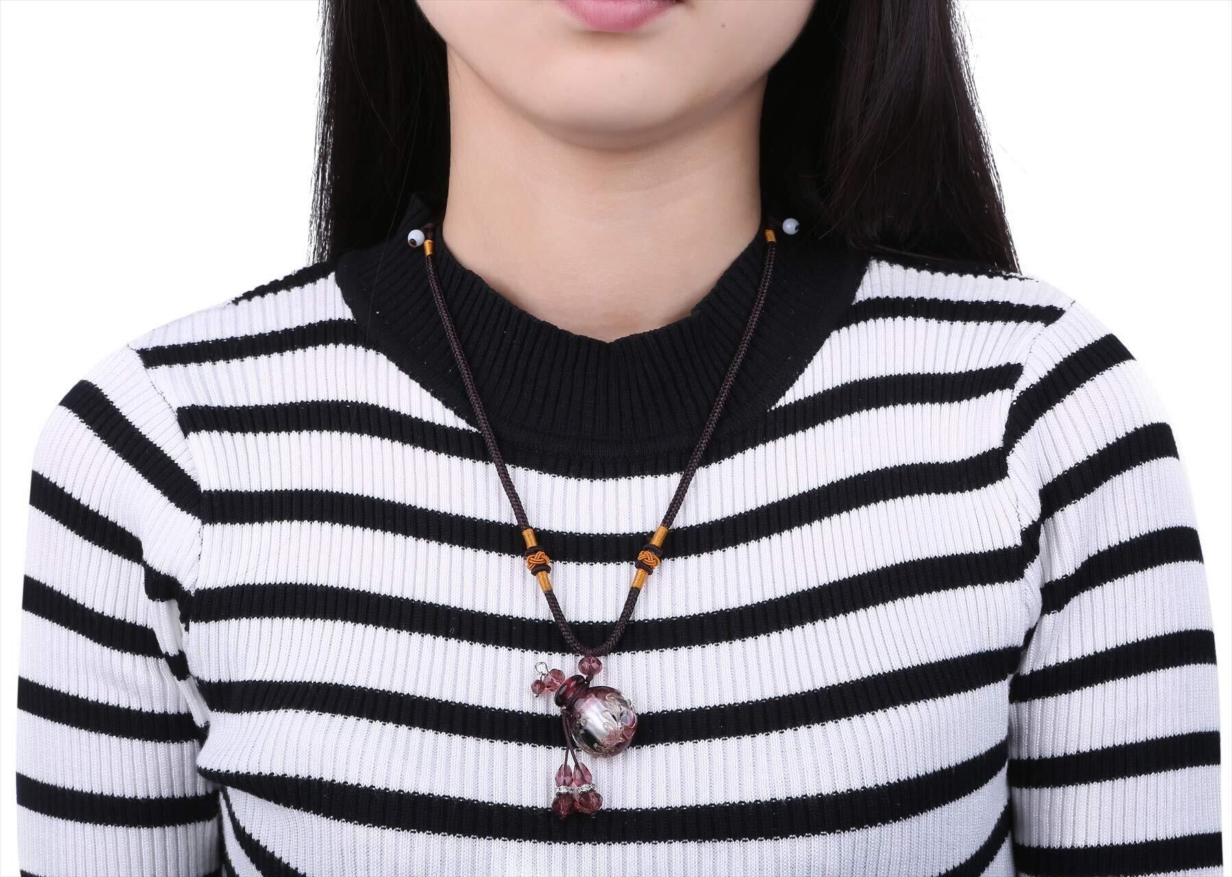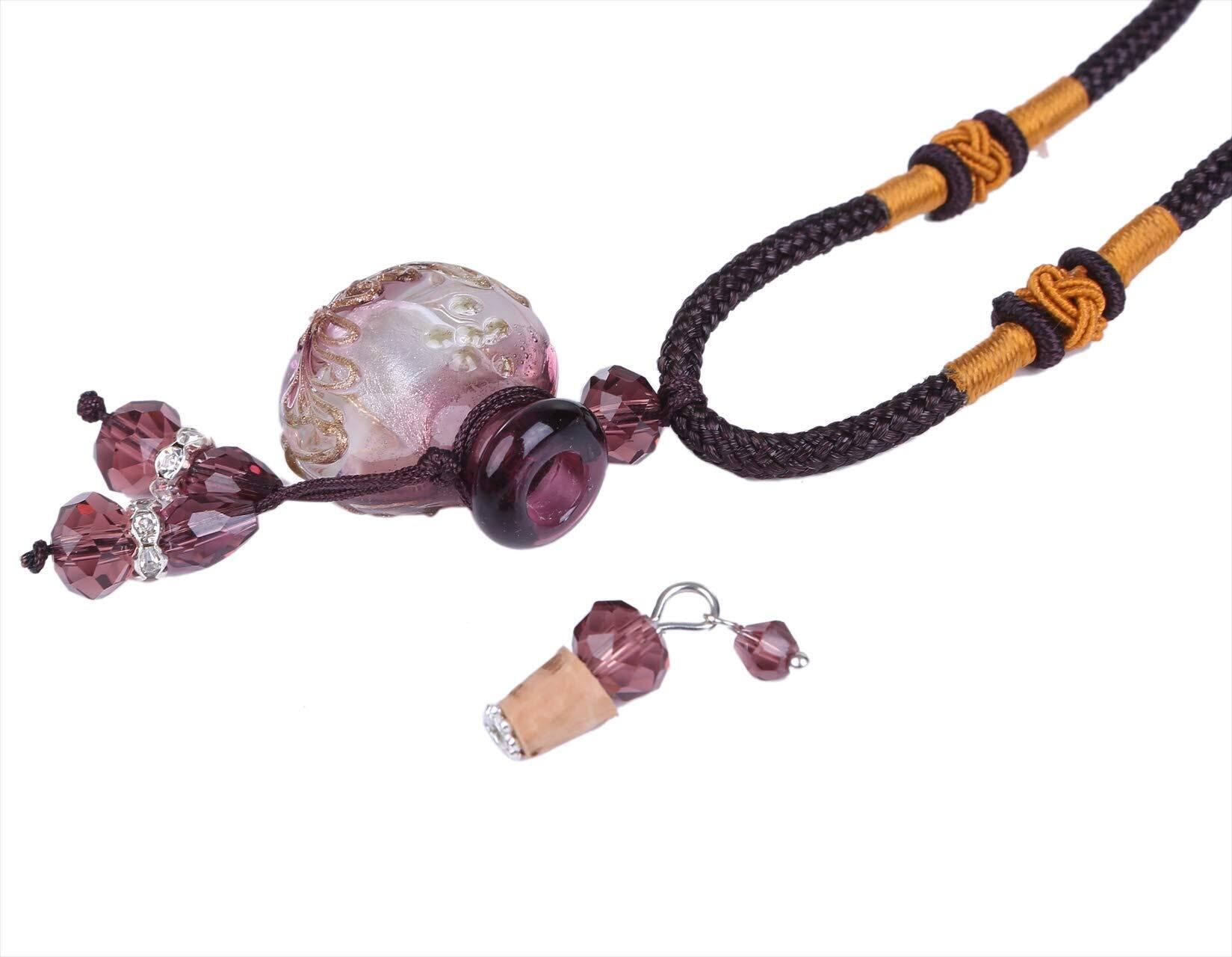 お洒落な色柄と細やかなデザインの癒やし効果抜群ガラス製の可愛いアロマネックレス。内瓶にアロマオイル/香水等を注入する事によりコルクを通じて、ほのかな香りに包まれ癒やされ楽しめます。