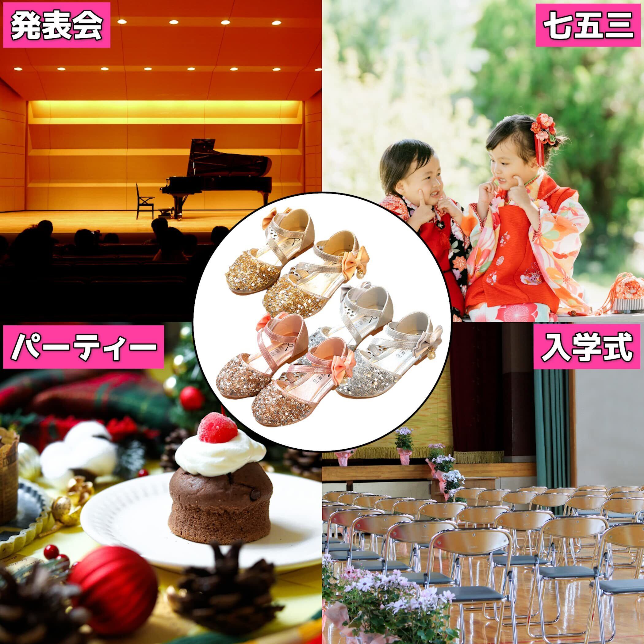 [Lezalic] キッズ シューズ フォーマル 女の子 靴 子供 リボン ラメ プリンセス 発表会 入学式 卒園式 結婚式 ドレス