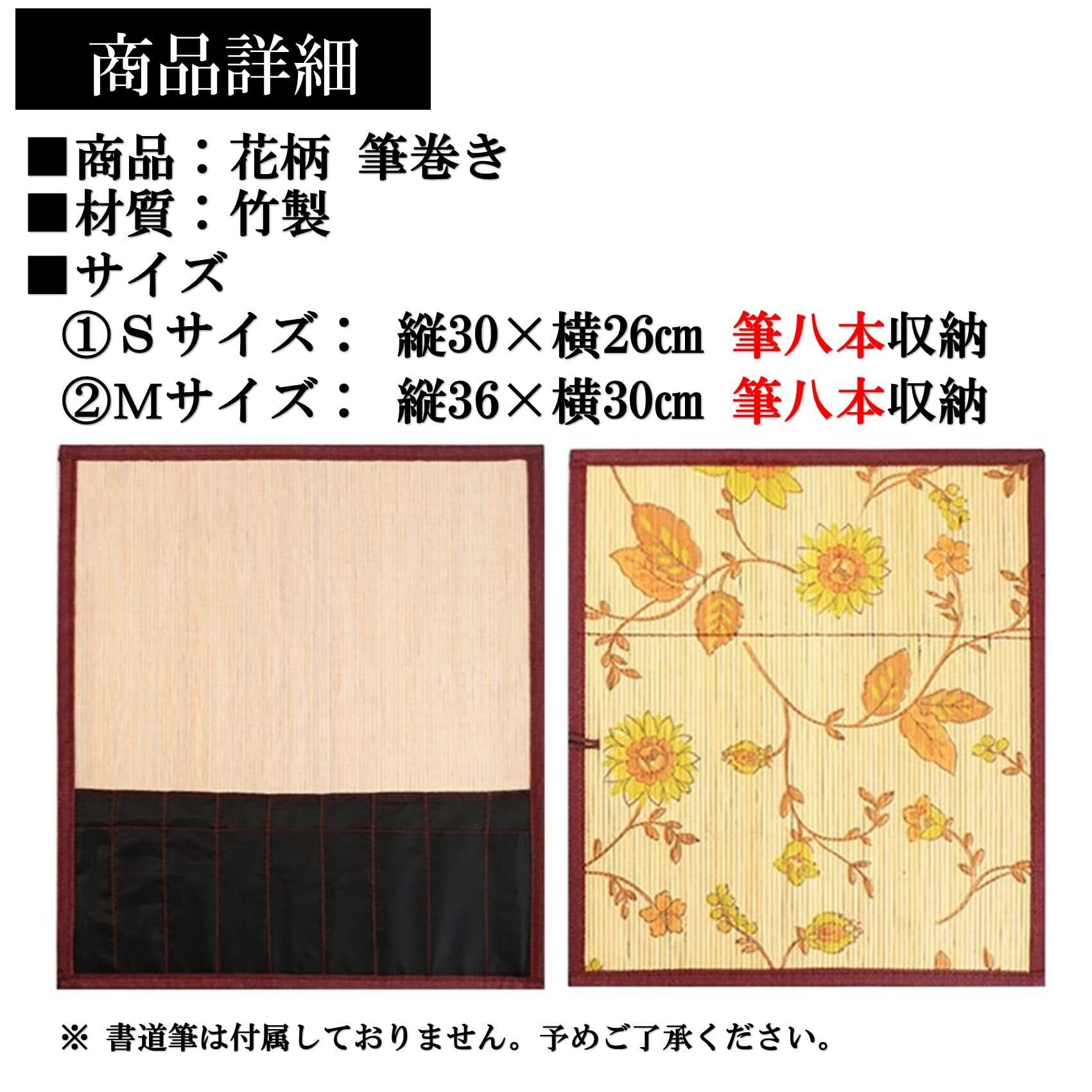 NOELAMOUR 筆巻き 書道 筆入れ 筆ケース 竹製 花柄 ポケット付き 筆 収納 保管 持ち運び (花柄 Sサイズ)