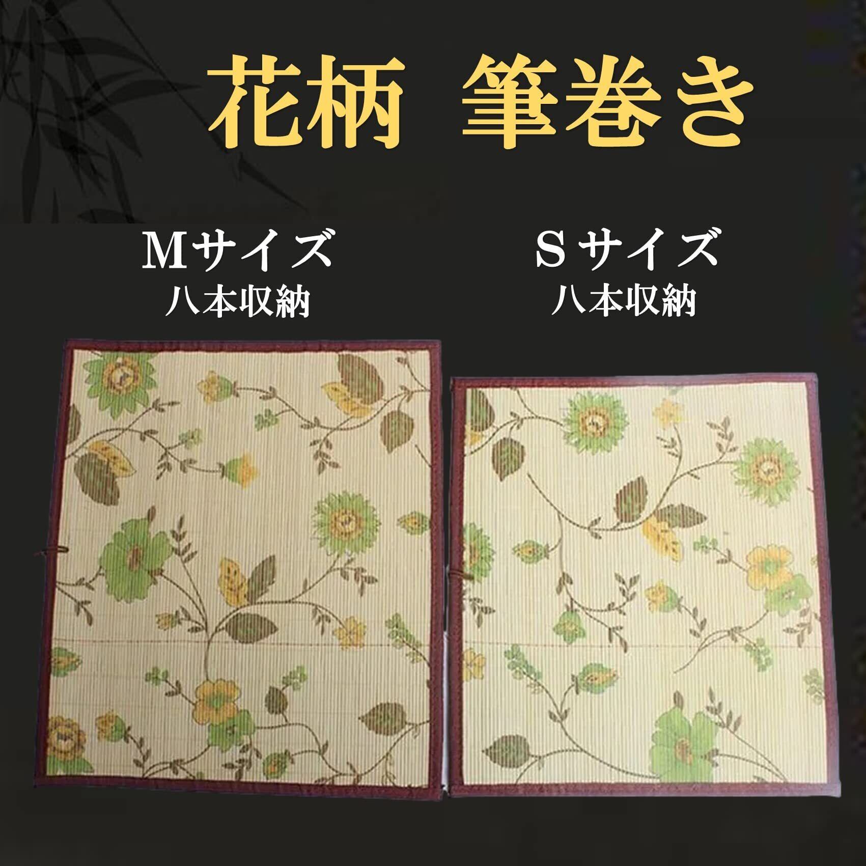 竹製花柄の筆巻きです。独立した仕切りの収納ポケットに書道筆を8本収納できます。Sサイズ、Mサイズ2種類からお選びいただけます。軽量コンパクトで筆の持ち運びにご活用ください。丸めて収納するためお出かけの際も嵩張りません。