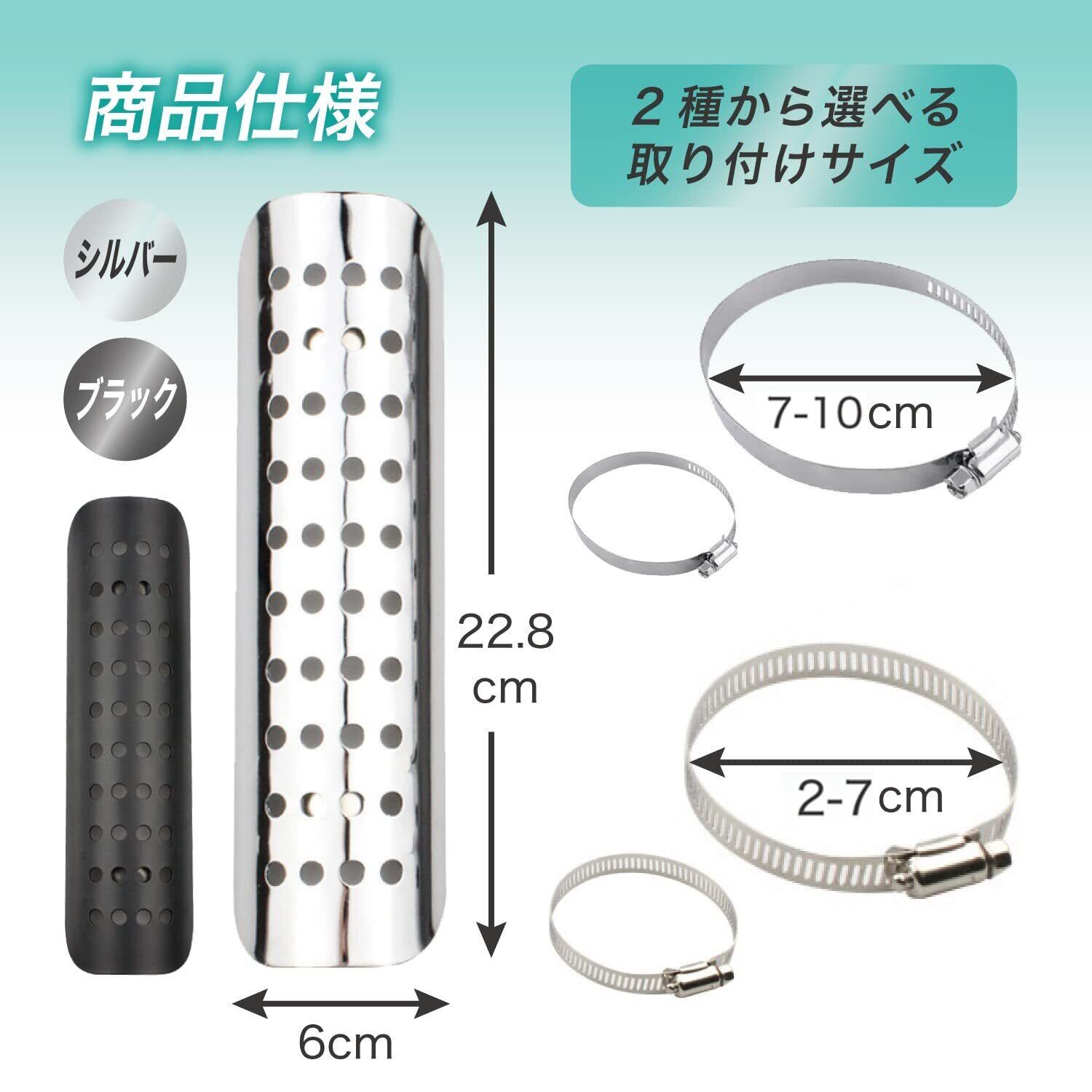 サイズ(約):ヒートカバー 22.8cm x 6cm / 取付部 2-7cm or 7-10cm / 重量 178g