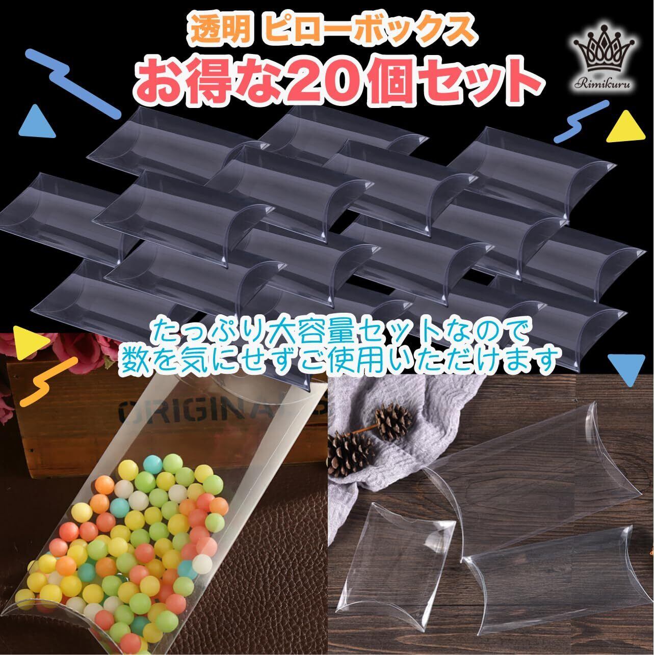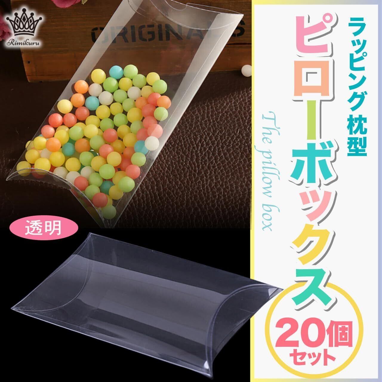 【商品仕様】セット内容:ピローボックス ×20個セット サイズ:約9.0cm×約6.0cm×約2.5cm カラー:透明 1個あたりの重さ:約4.3g ※モニターの環境等により、色の見え方に若干差が生じる場合がございます。