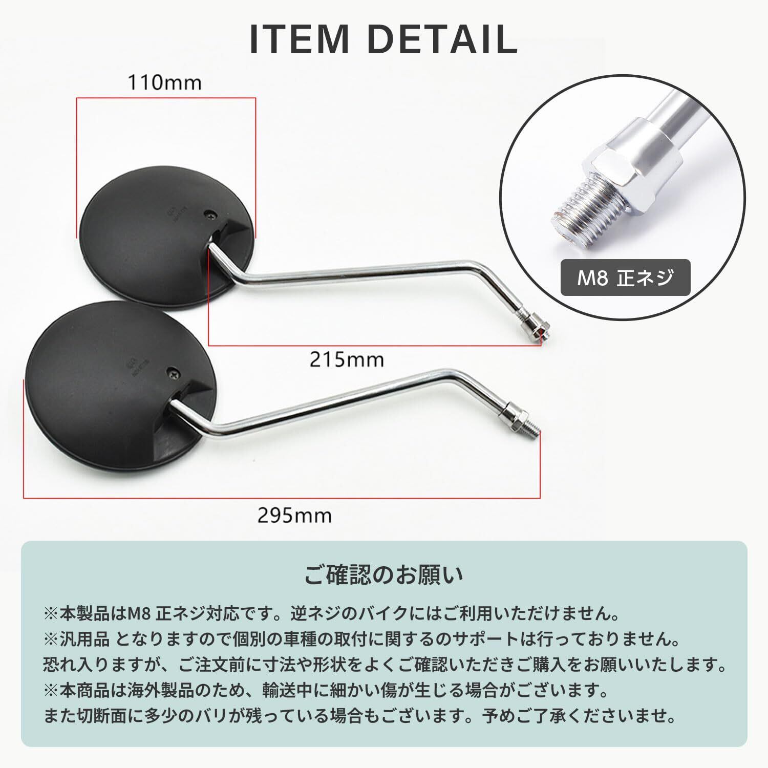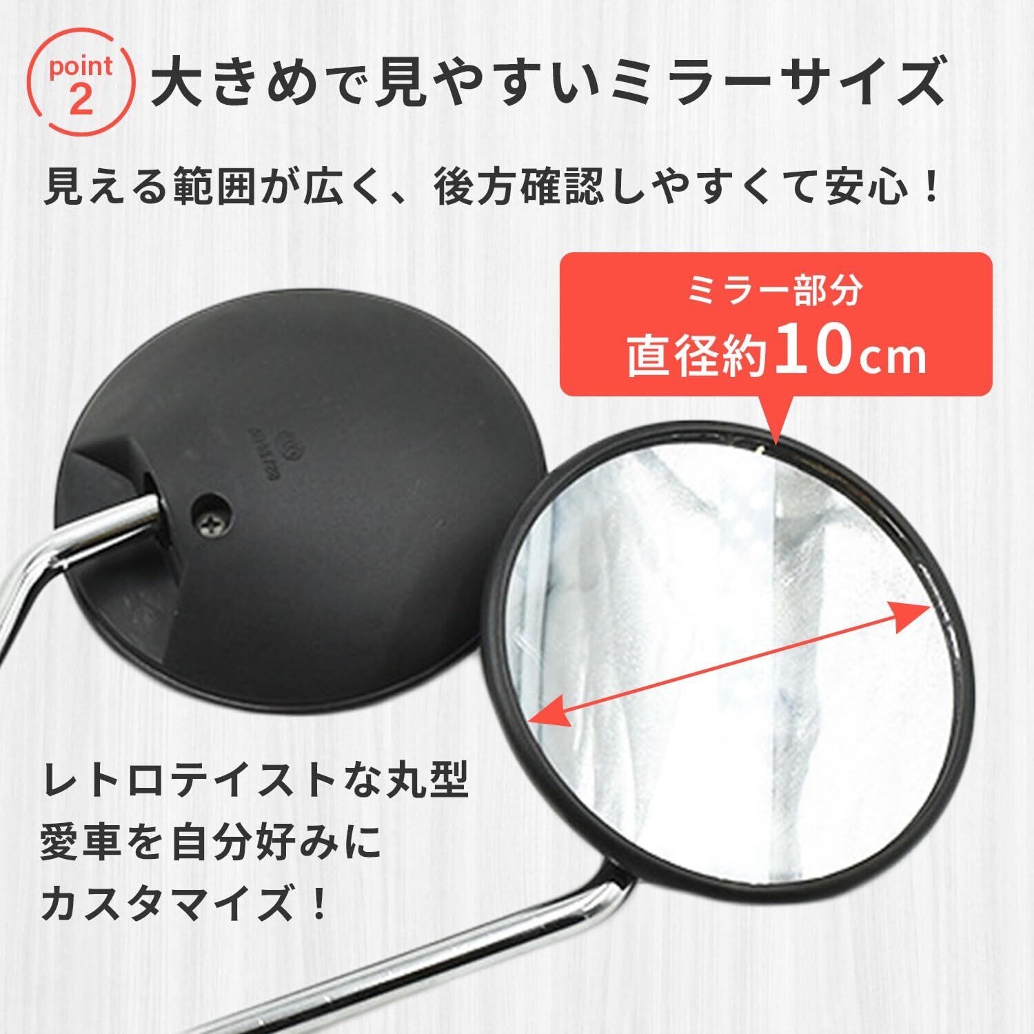 Archnote バイク ミラー 8mm 左右 セット 正ネジ 丸型 サイド 汎用 スクーター カスタム 黒 ブラック