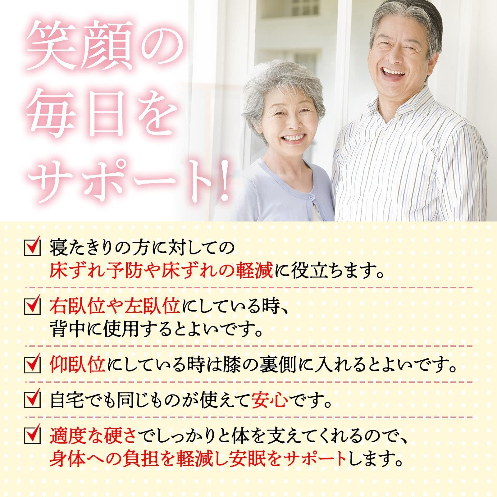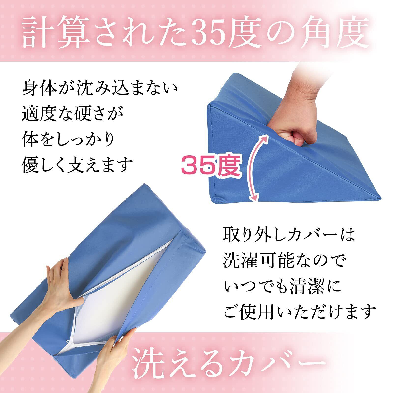 【高反発】弾力性に優れながら、身体が沈み込まない適度な硬さでしっかりと支えます。計算された斜めの角度35度で体の曲線に合わせて体勢をキープでき、側臥位・仰臥位時の除圧、足上げ、寝返りの介助をスムーズに。身体への負担も軽くなります 【洗えるカバー】カバーはファスナーを開けてサッと取り外しでき、洗濯が可能なのでいつでも清潔にお使いいただけます。肌の弱い方やあせもなどの皮膚トラブルが気になる方にピッタリ!万が一汚れてしまったときも安心です。