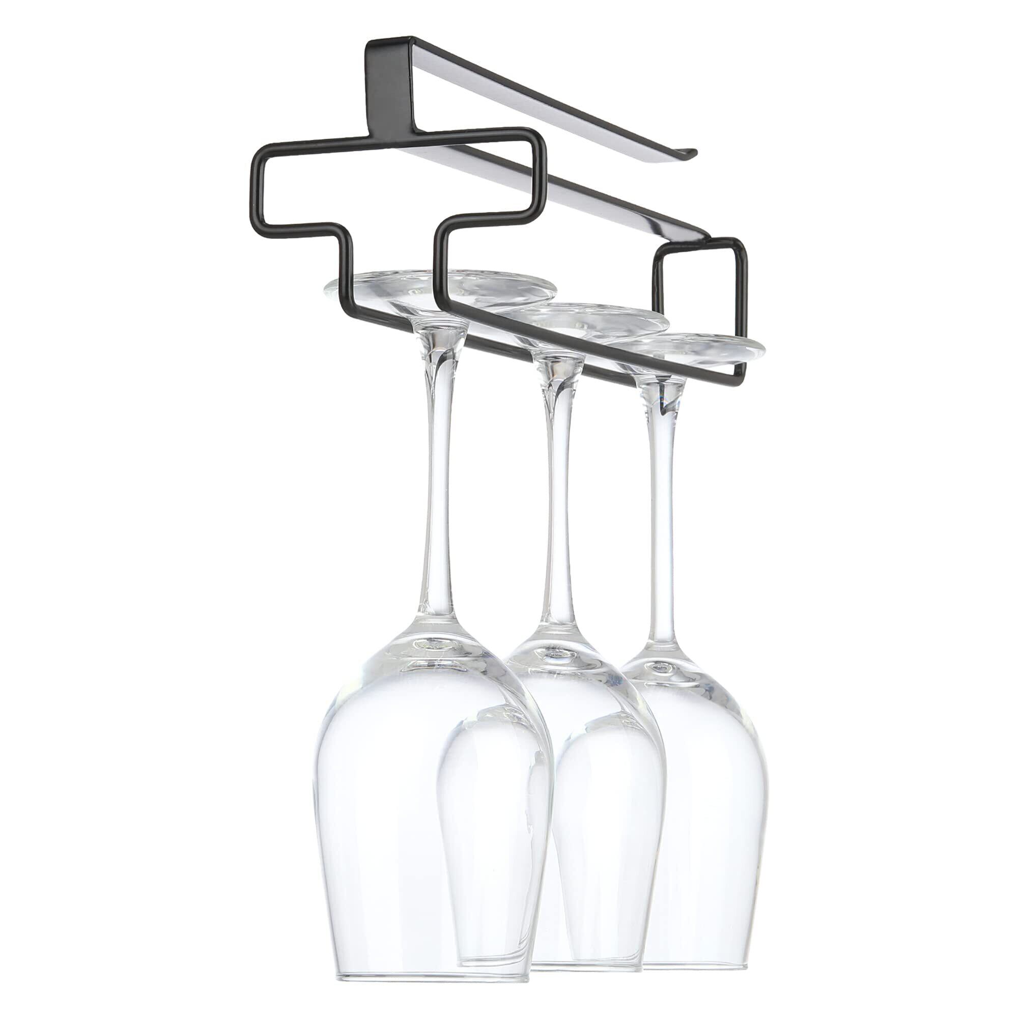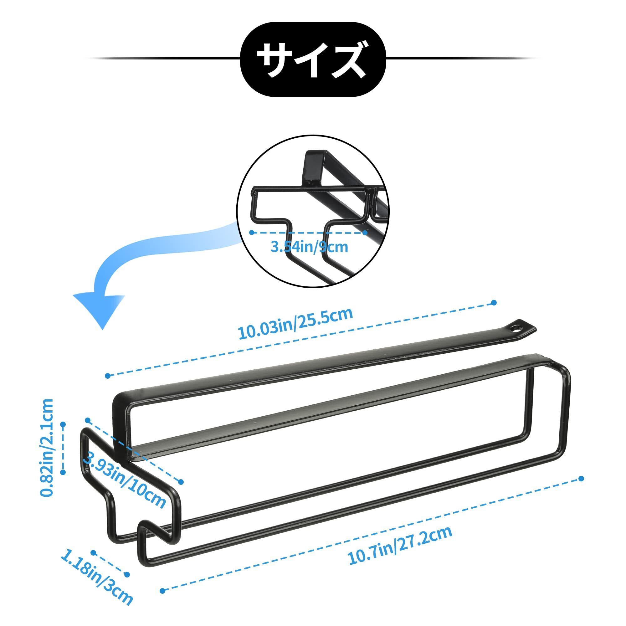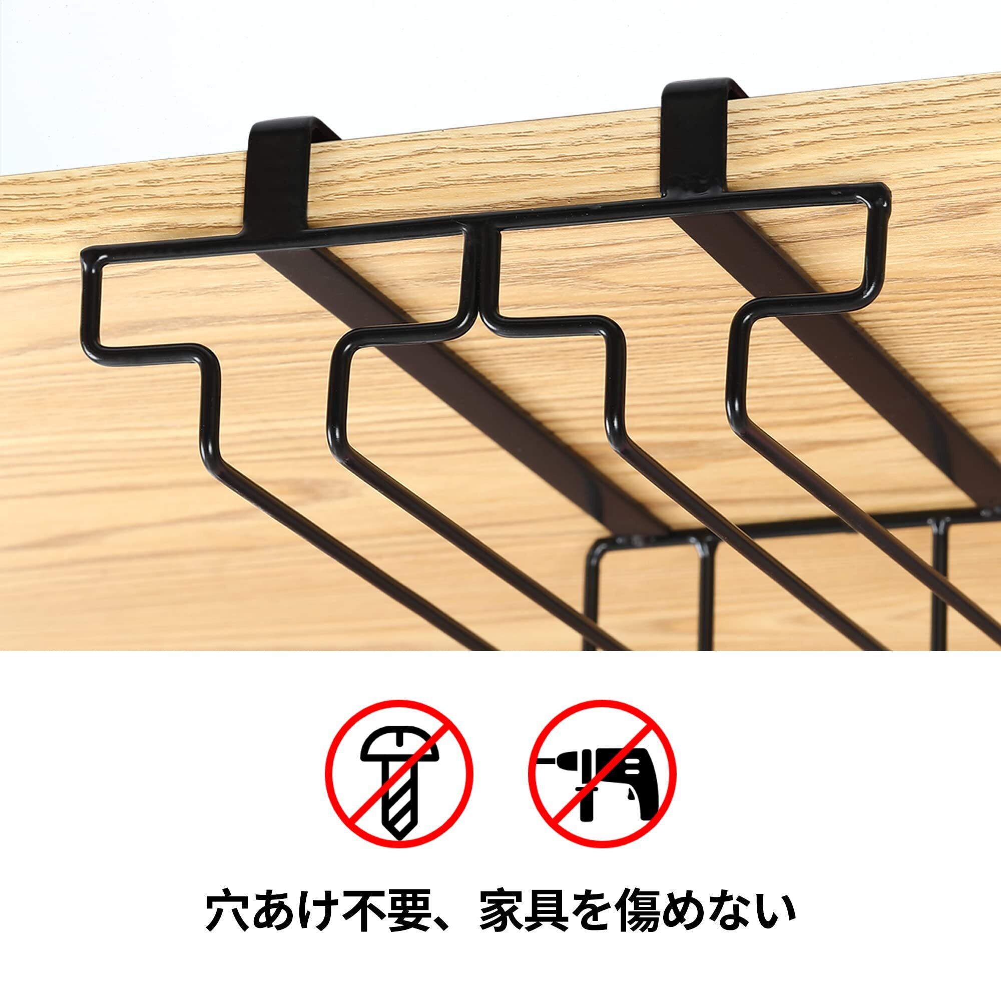 FOMANSH ワイングラスホルダー 吊り下げ 穴あけ不要 収納可能 ネジ止め不要 棚厚さ調節可能 キッチン 黒色