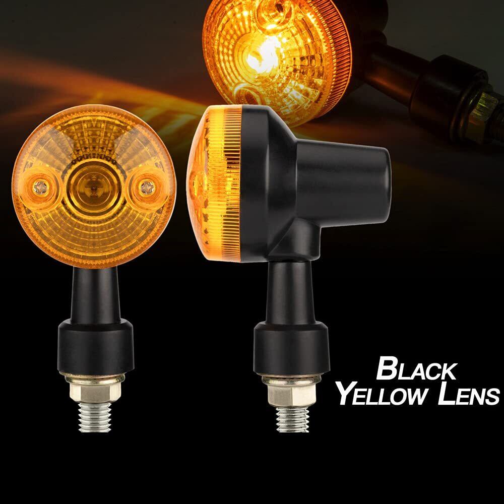 ウインカー 1台分 4個セット 汎用 メッキ クリア イエロー レンズ フロント リア 丸型 ミニ (ブラック/イエロー)