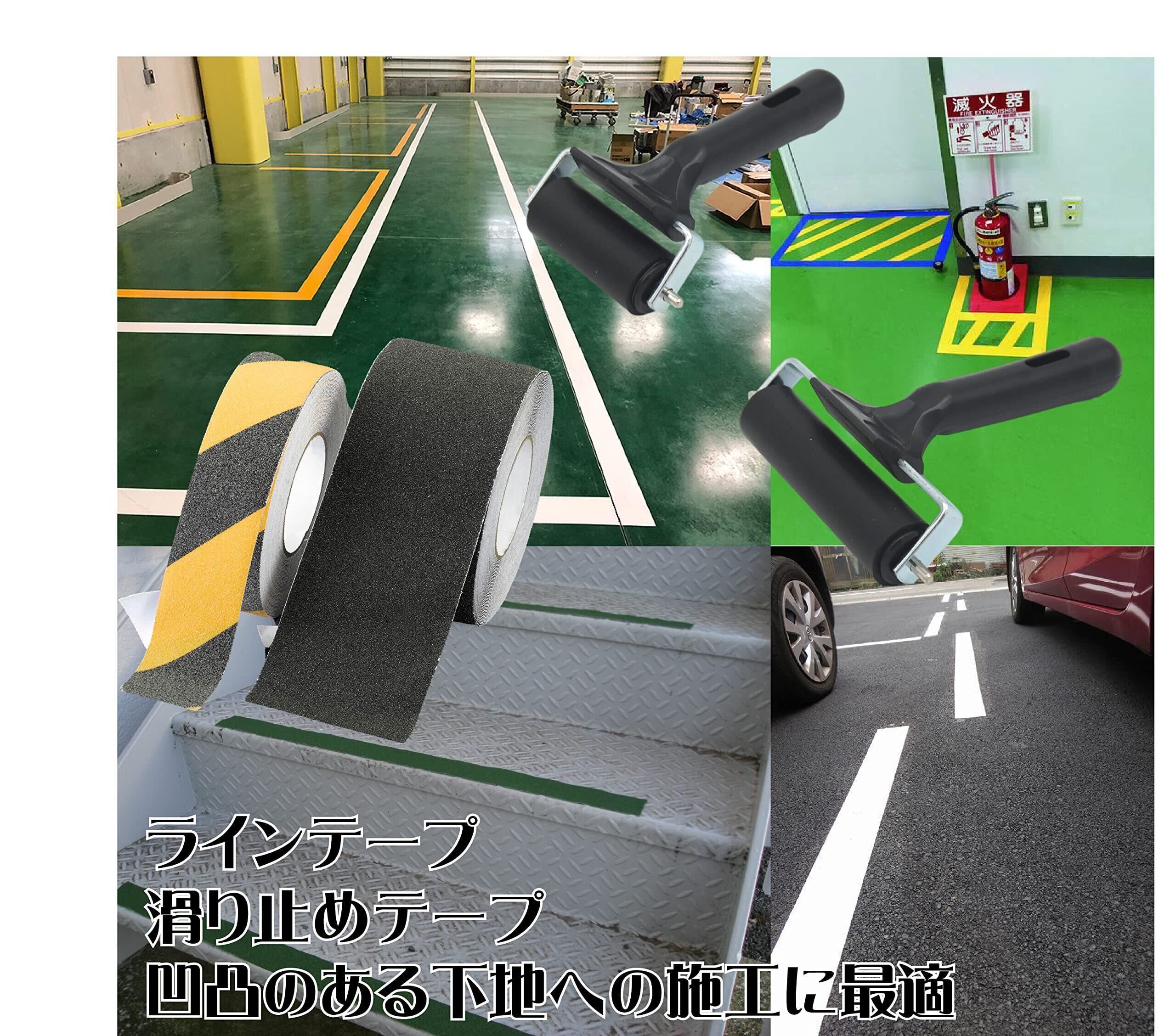 アスファルトやコンクリートに貼る滑り止めテープ、ラインテープ、駐車場の白線テープなど、凹凸がある下地の施工に最適です。プラスチックや金属のローラーと比べて表面が柔らかいので凹部分にも圧着できるのではがれにくくなります。クロスの上に貼る場合のウォールステッカーの圧着施工にも。