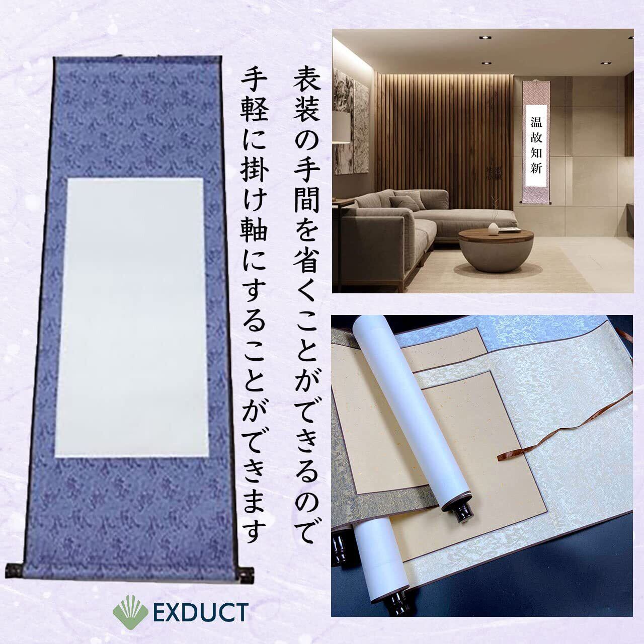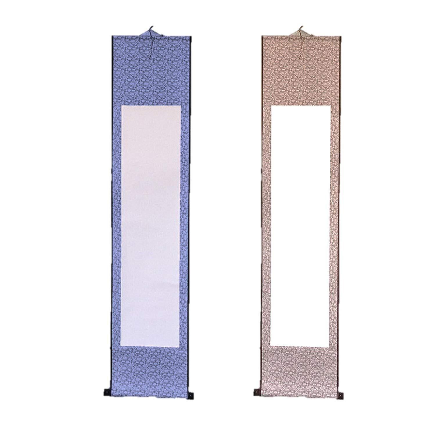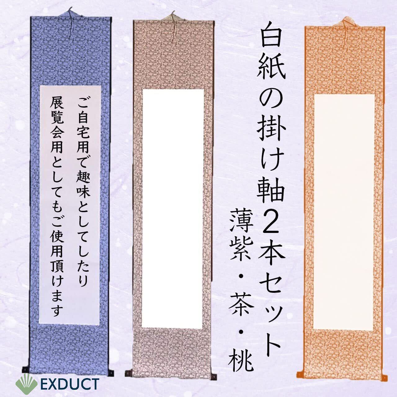 EXDUCT 掛け軸 2本 セット 無地 白紙 和紙 習字紙 画仙紙 書道 習字 巻物 日本画 絵 額 書道 かっこいい (薄紫色+茶色)