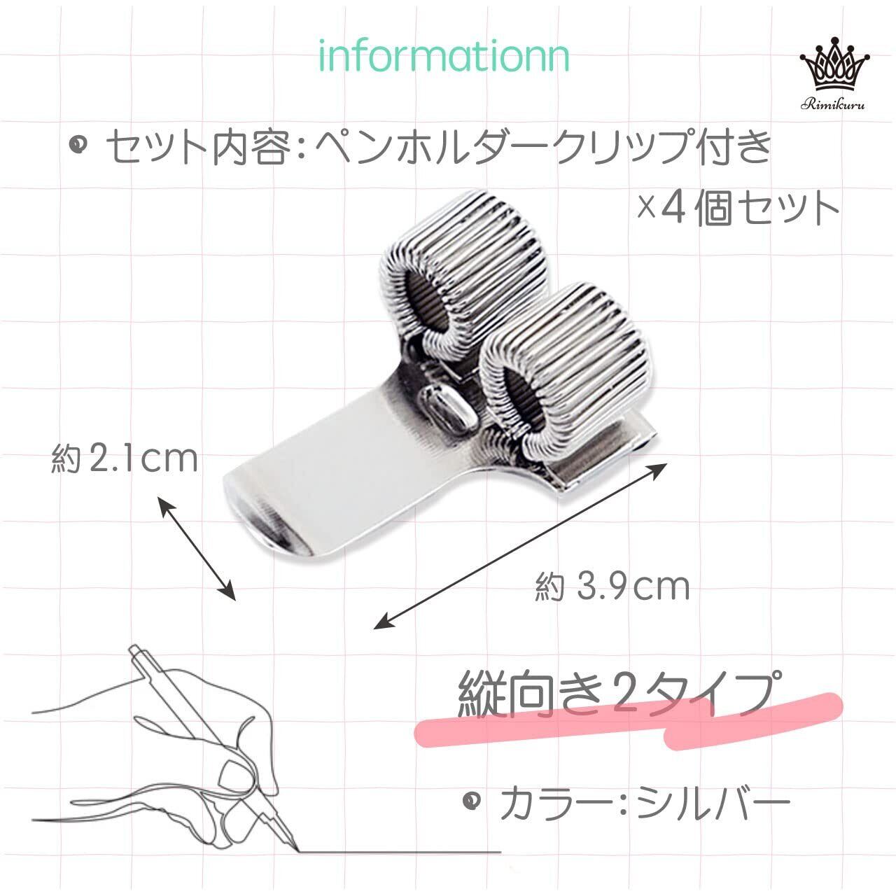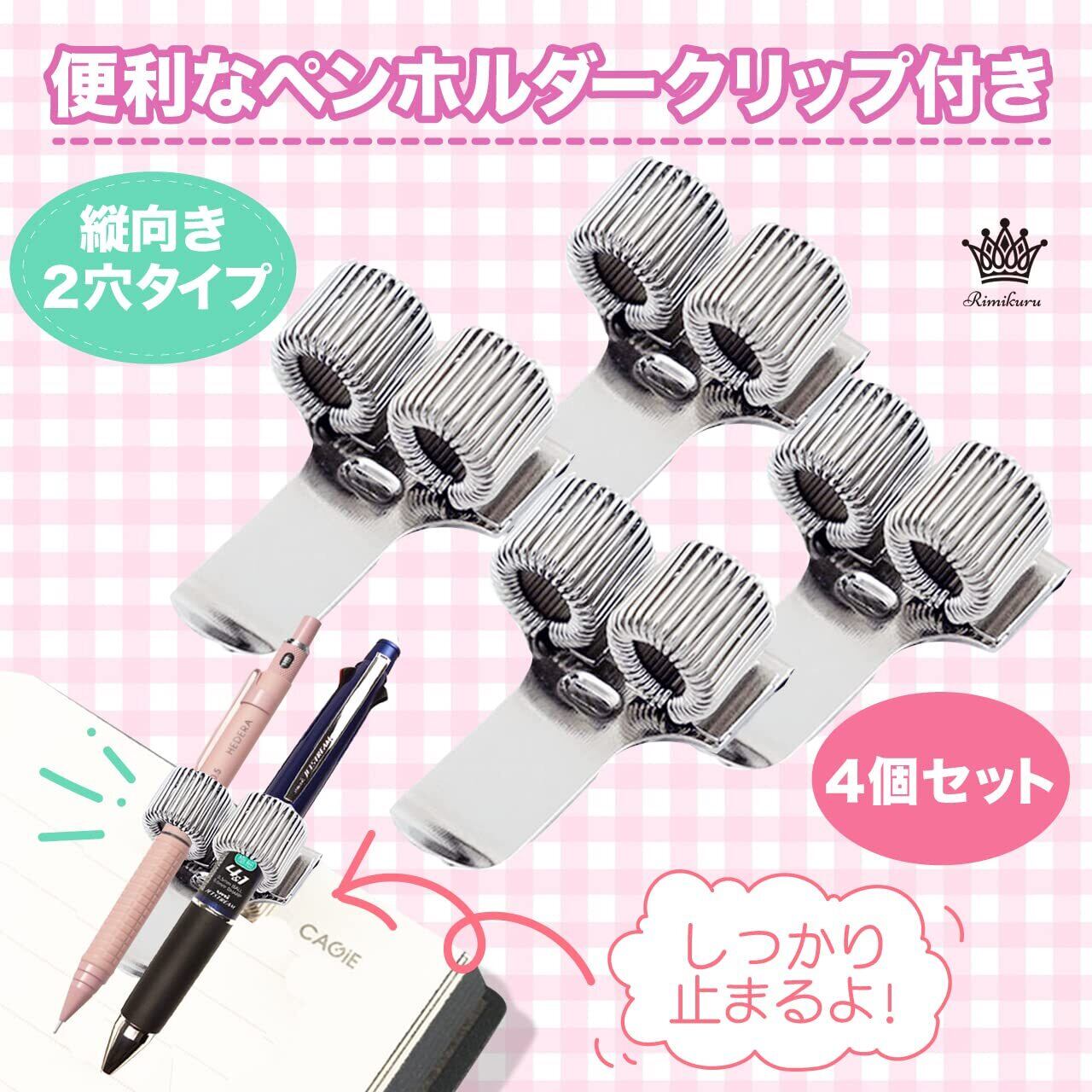 Rimikuru ペンホルダー クリップ付き 4個セット ボールペン フック クリップ クリップ式ペンホルダー 手帳 ノート (縦向き2穴タイプ)