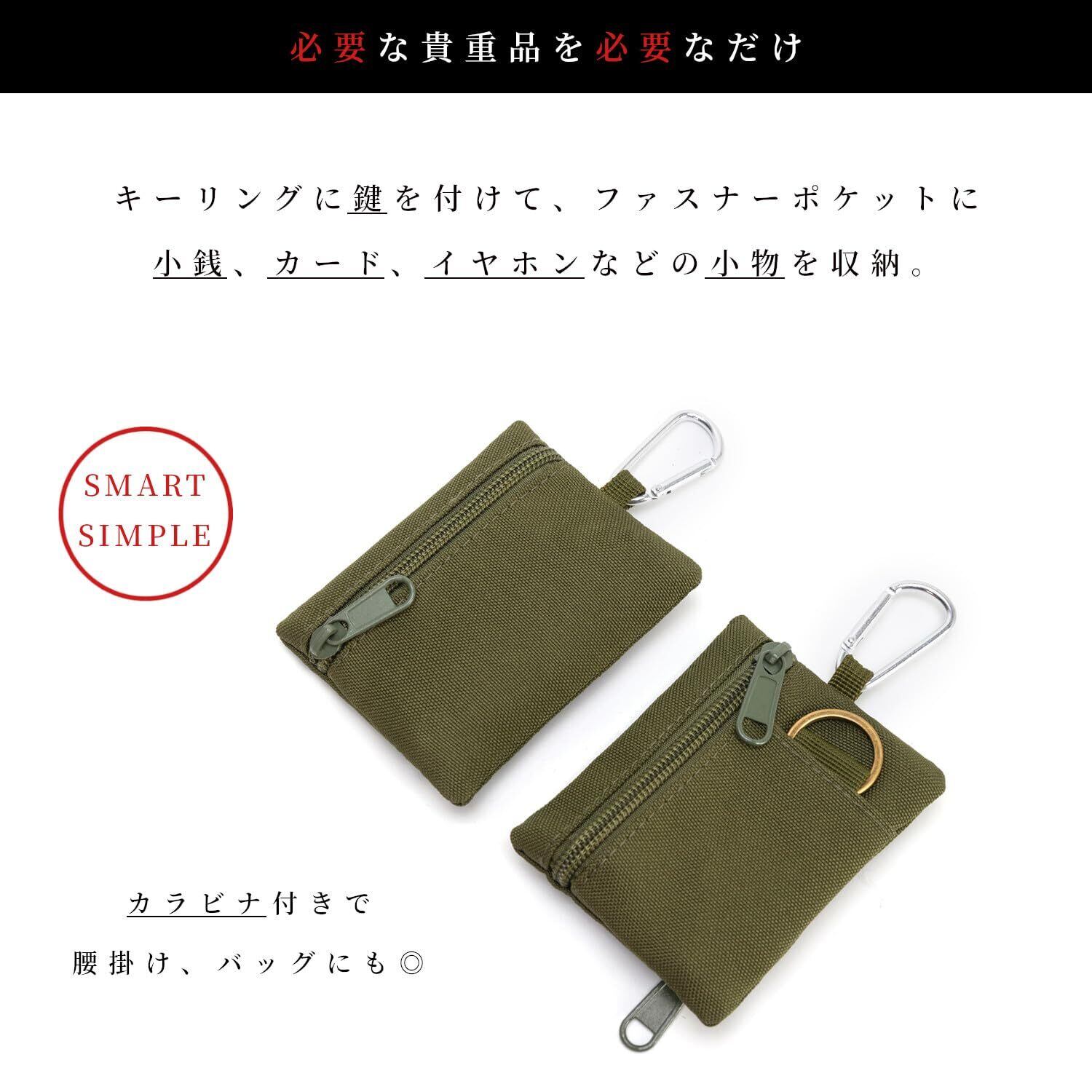【 キーケースとしても 】 キーホルダー付きでスマートキーや自宅の鍵もまとめて持ち運べます。カラビナ付きで腰掛けも◎