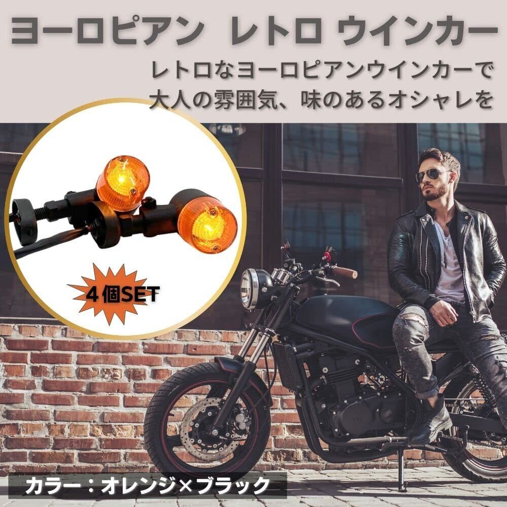 one+lifestyle バイク ヨーロピアン ウインカー 円筒型 ライト ランプ 4個 セット 丸型 方向指示器 改造 レトロスタイル アルミ合金 クール ブラック サイドウインカー ハーレー モンキー など 汎用 モーターサイクル(オレンジ)