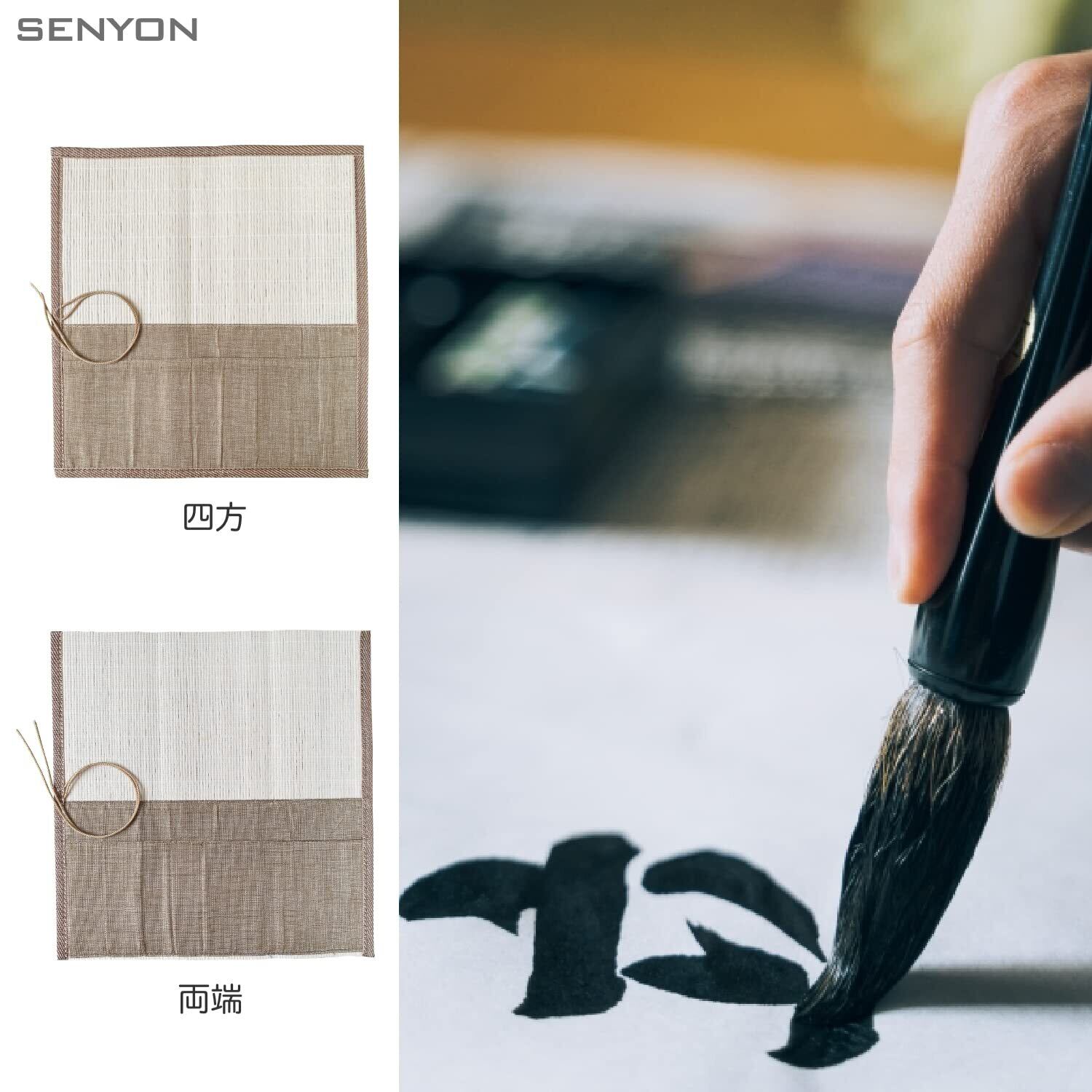[SENYON]竹製 ポケット付き 筆巻 水彩 書道 持ち運び (四方)