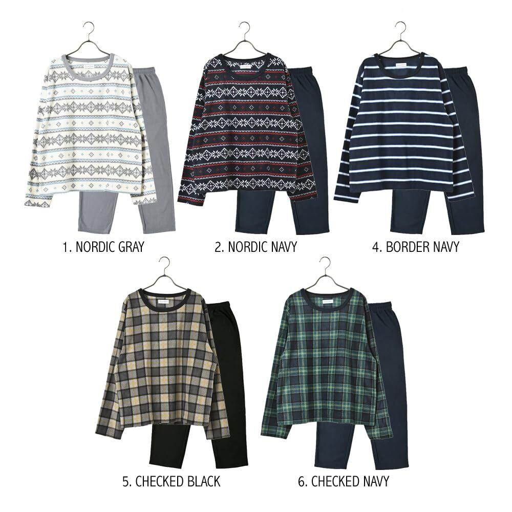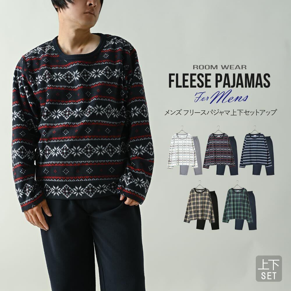 [MORE AUNI] フリース パジャマ メンズ ルームウェア 上下セット セットアップ 柄 5カラー 2サイズ 部屋着 冬
