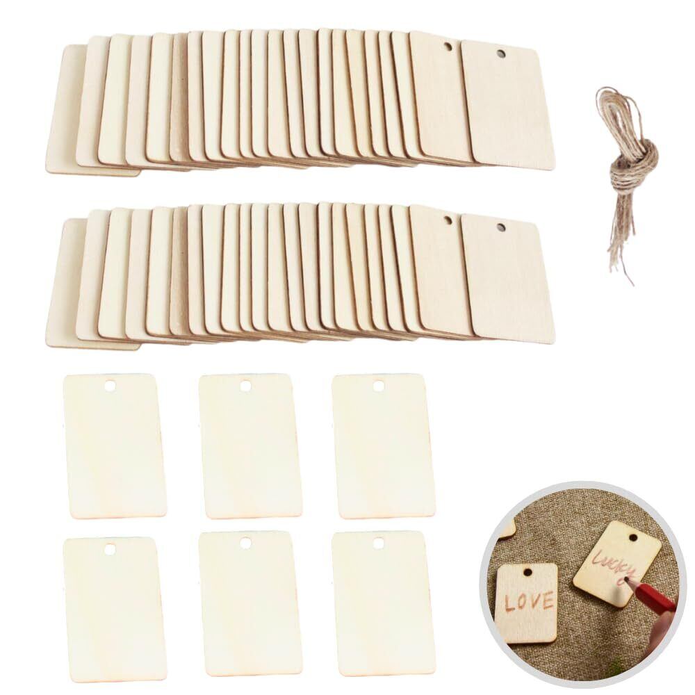 せんふう 木材 タグ 名札 木札 ボトルネームプレート プレゼント ショップ Bar ひも付き 無地 長方形 50枚