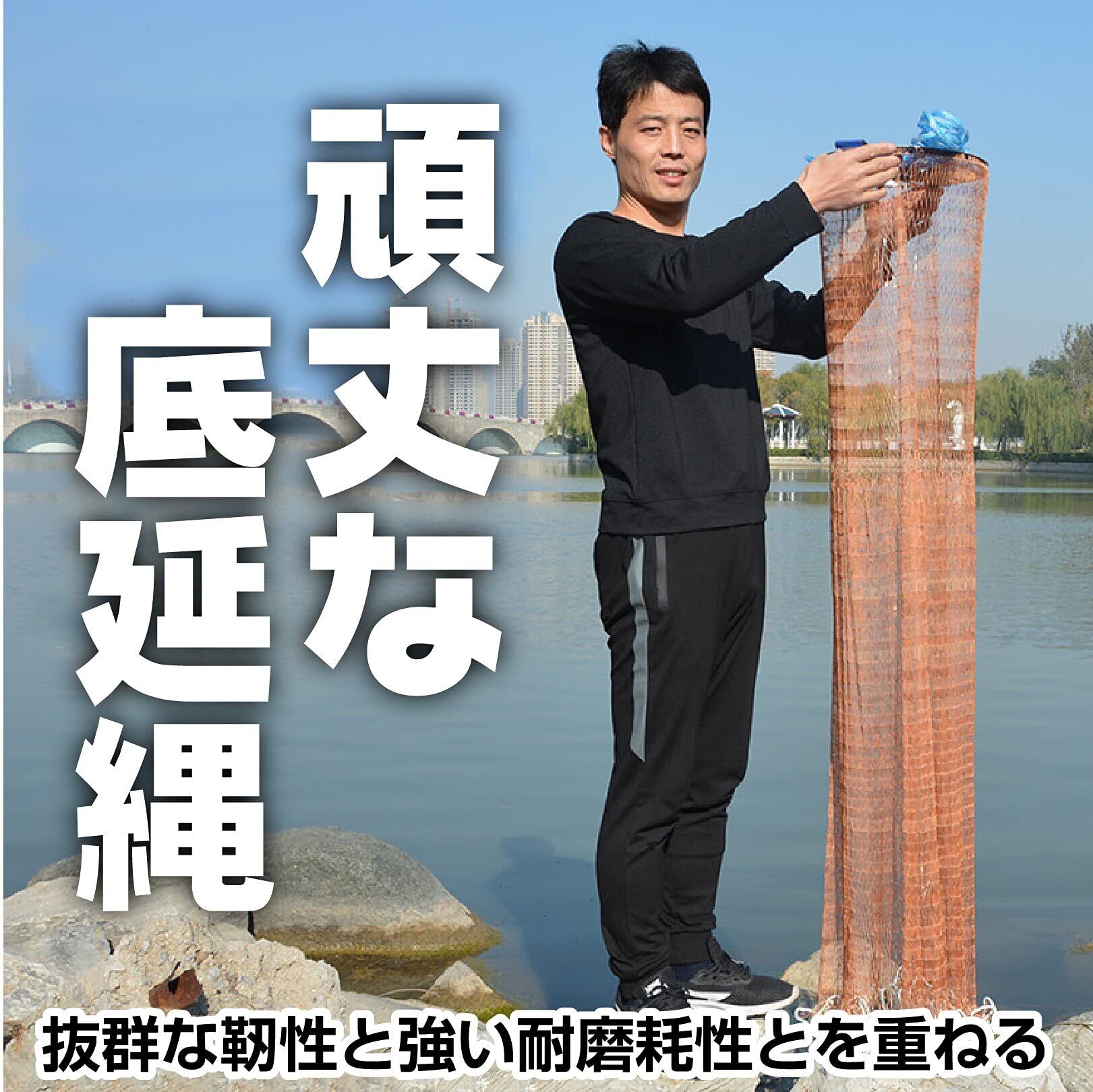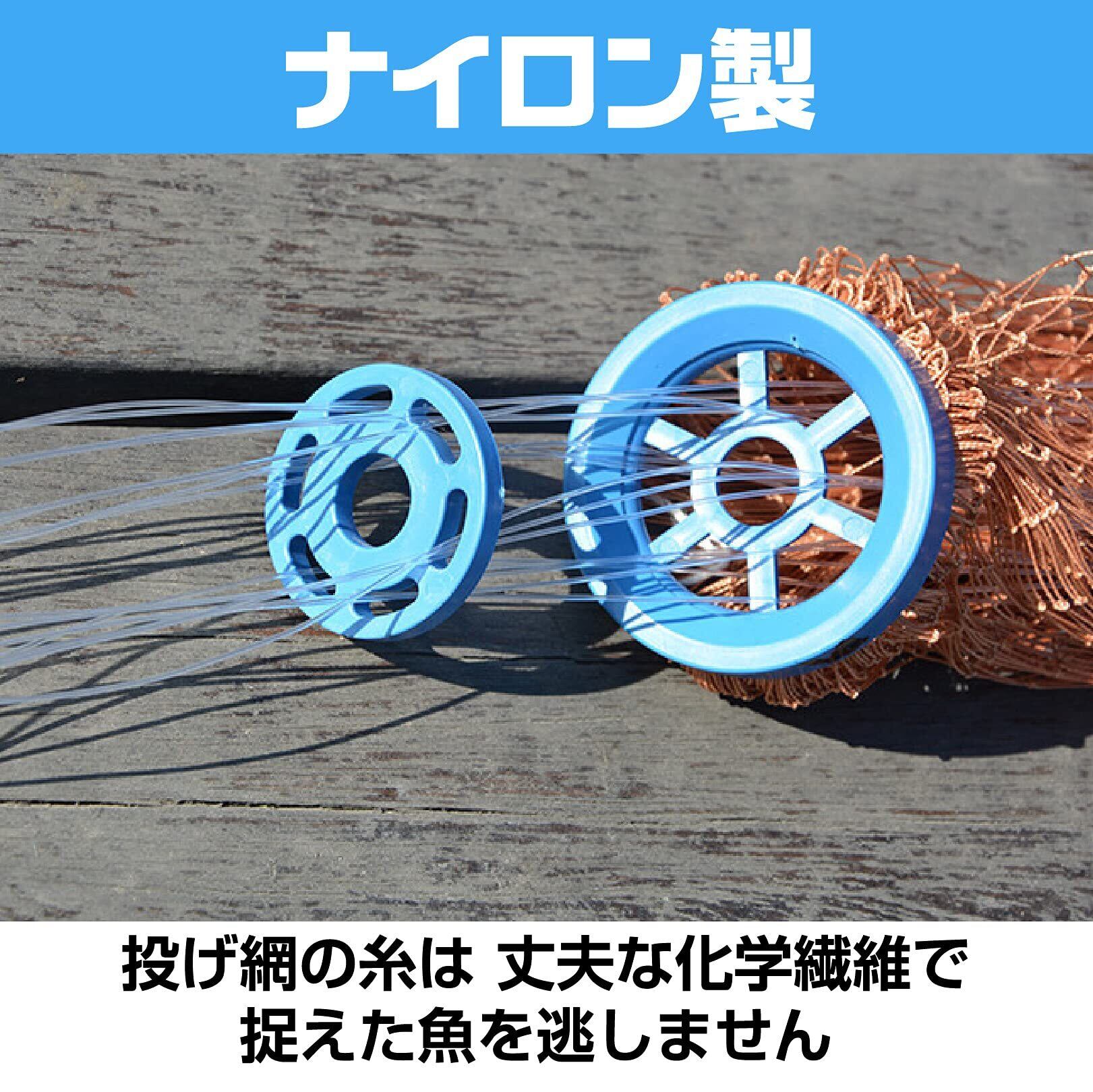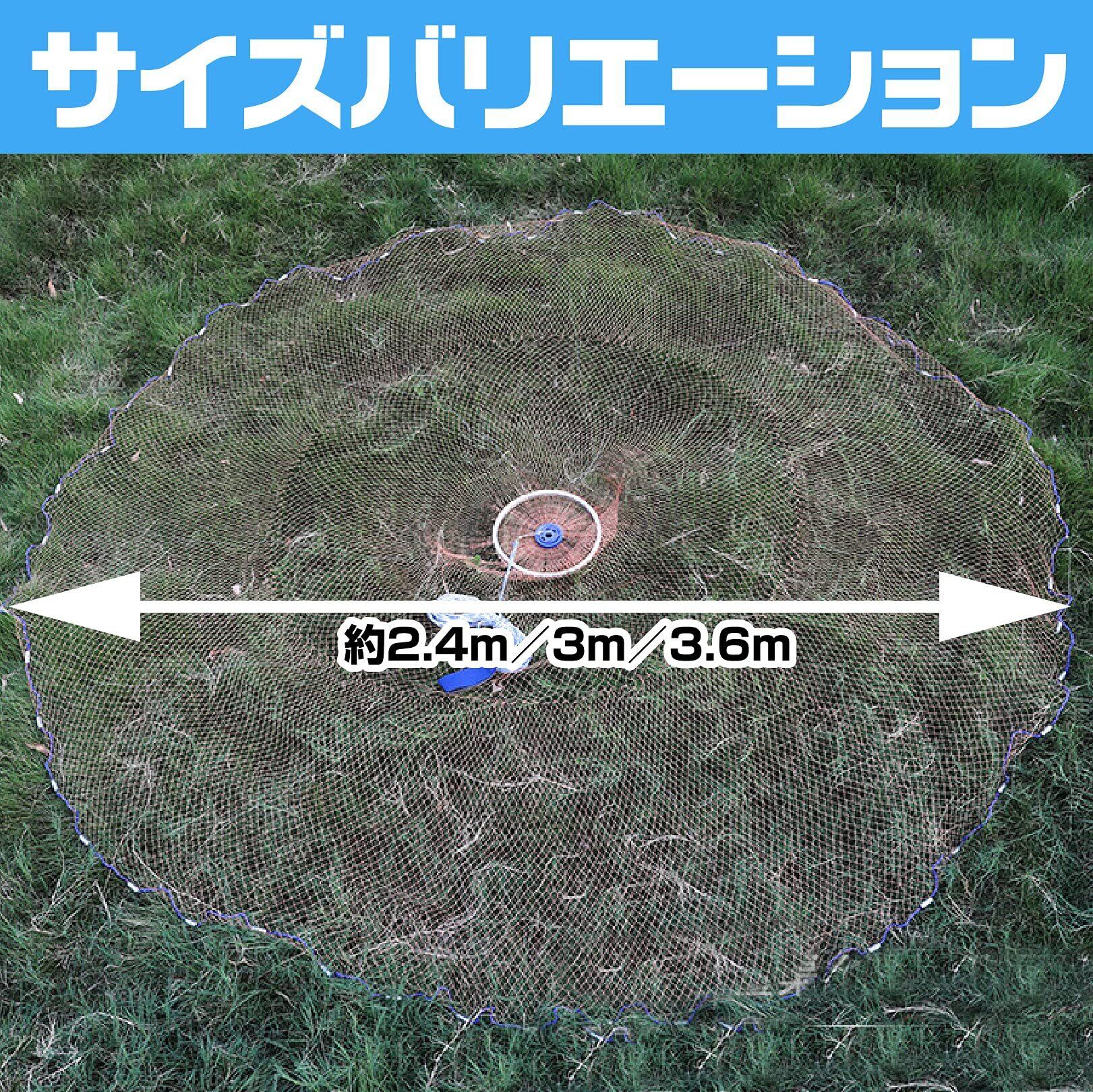 投網サイズ(直径):約2.4m、約3.0m、約3.6m 手綱(たづな):約10m パケージ内容:投網、投げ方マニュアル 【推奨年齢】14才以上 ※モニターの環境により、色の見え方に若干差が生じる場合がございます。