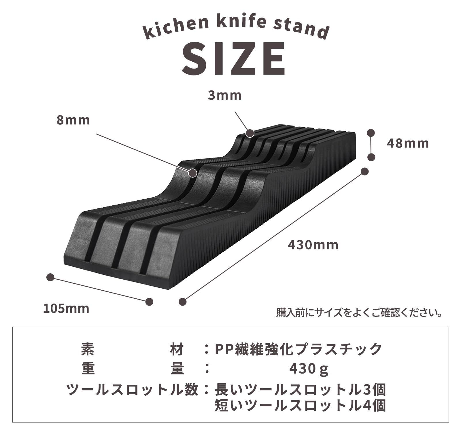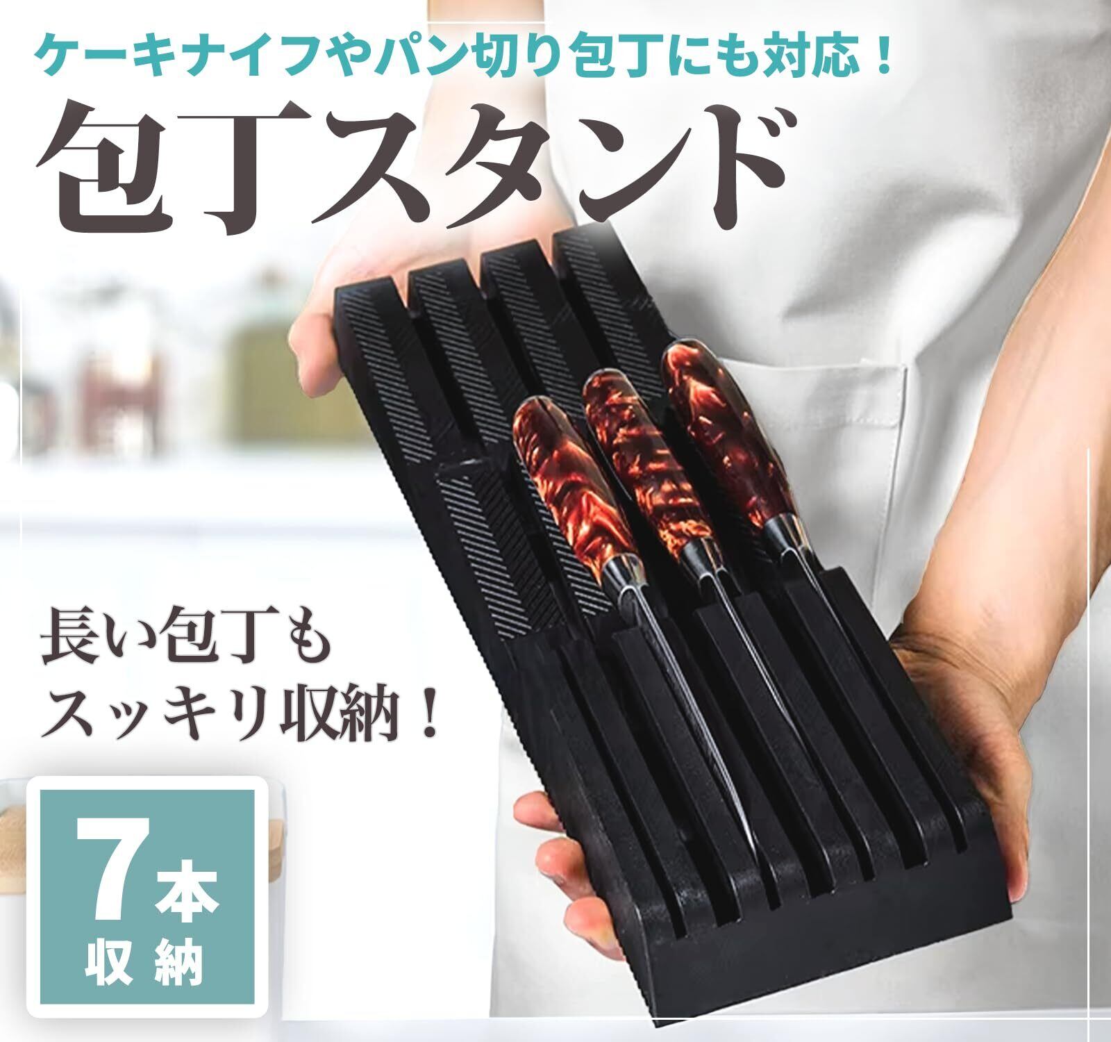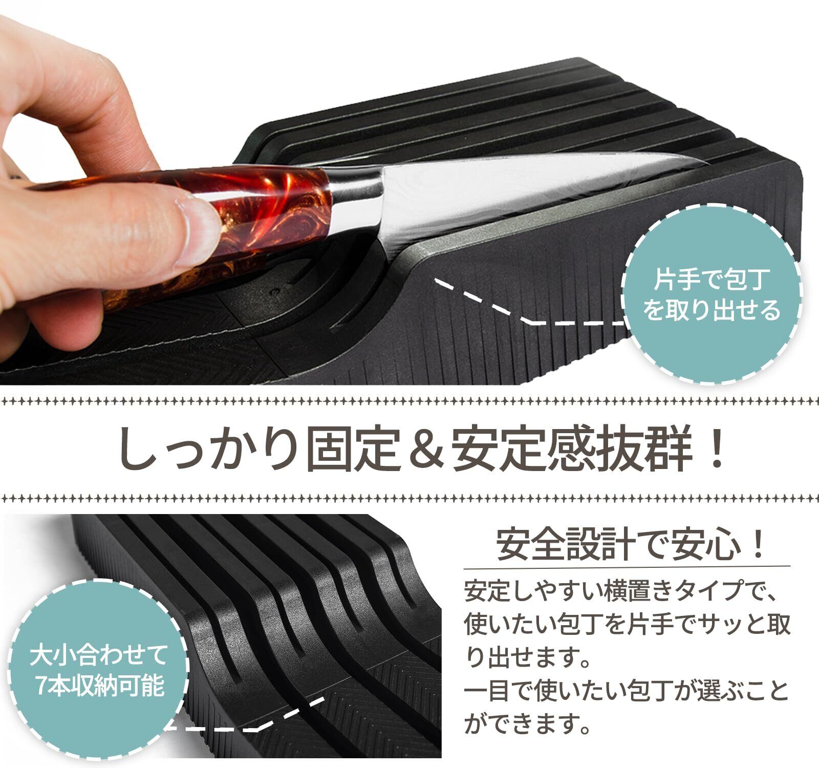 Thujopsis 包丁立て 横型 包丁スタンド 取り出しやすい 平置きタイプ 黒 7本用 丸洗い可能 整理整頓 プラスチック (横型包丁スタンド)