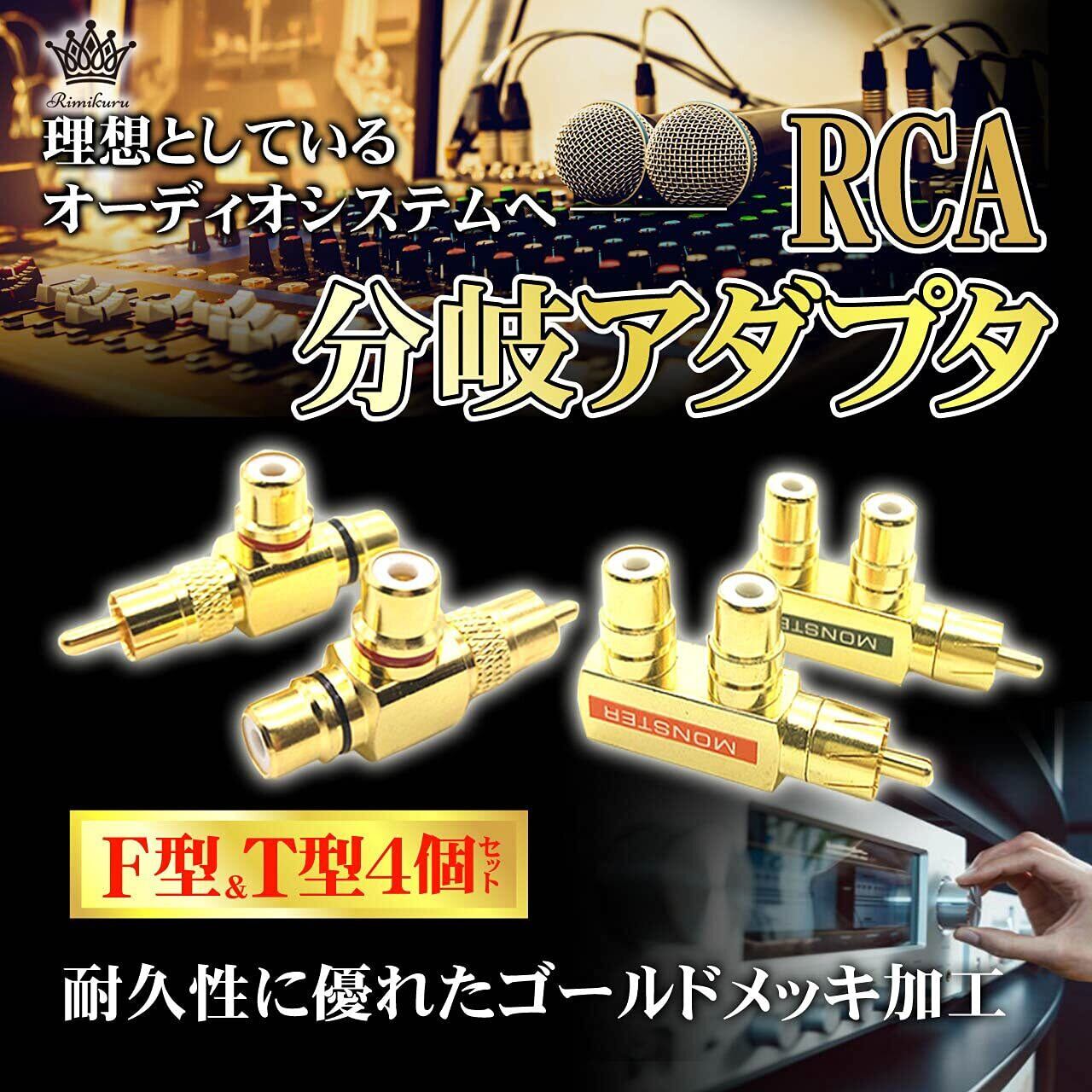 Rimikuru RCA 分配器 分岐アダプタ 2分配 RCAケーブル オーディオ 変換 プラグ RCA分岐アダプタ 金メッキ セット (F型 & T型 4個セット)
