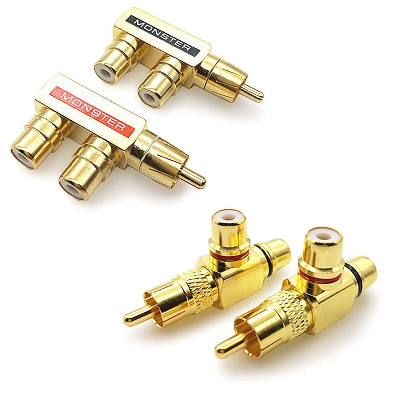 【商品内容】RCA2分岐アダプタ、T字アダプタ 個数:各2個、計4個 カラー:24金メッキ 商品素材:銅 ※モニターの環境などにより、商品の色の見え方に若干差が生じる場合がございますので、ご了承くださいませ。