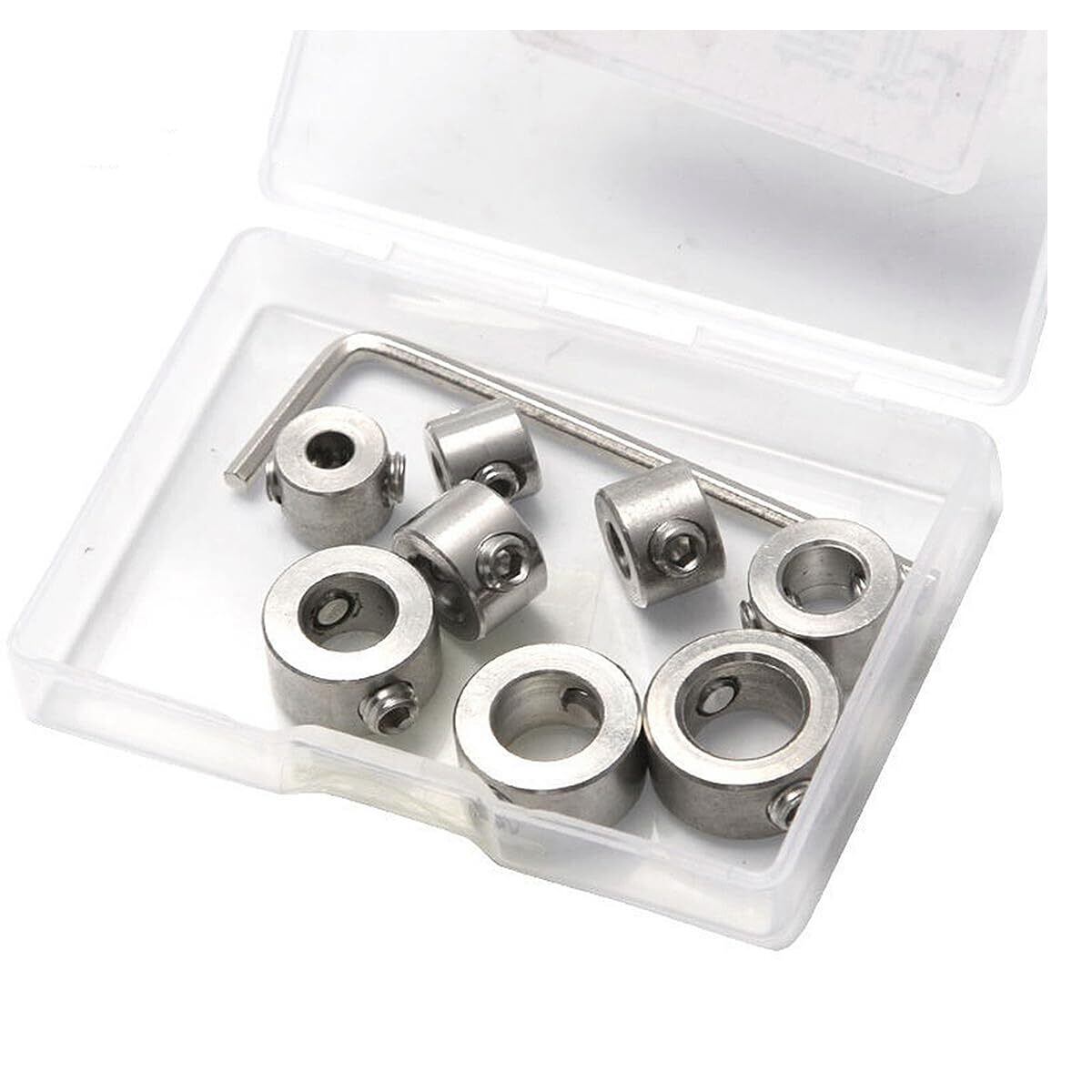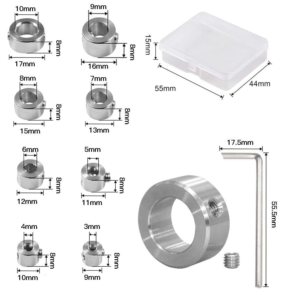 【パッケージ内容】8個のドリルストップリング。内径:3/4/5/6/7/8/9/10mm、六角レンチ x1。