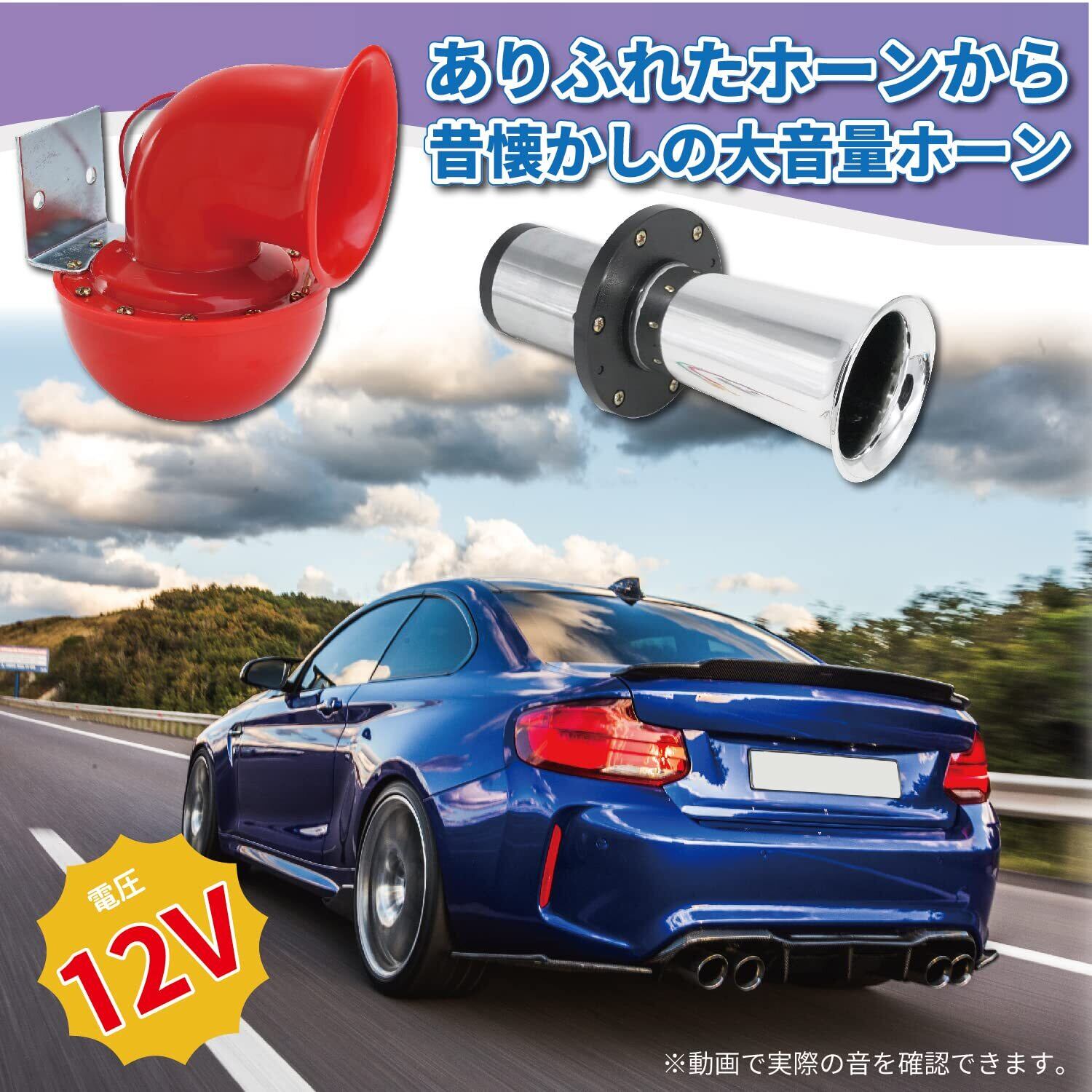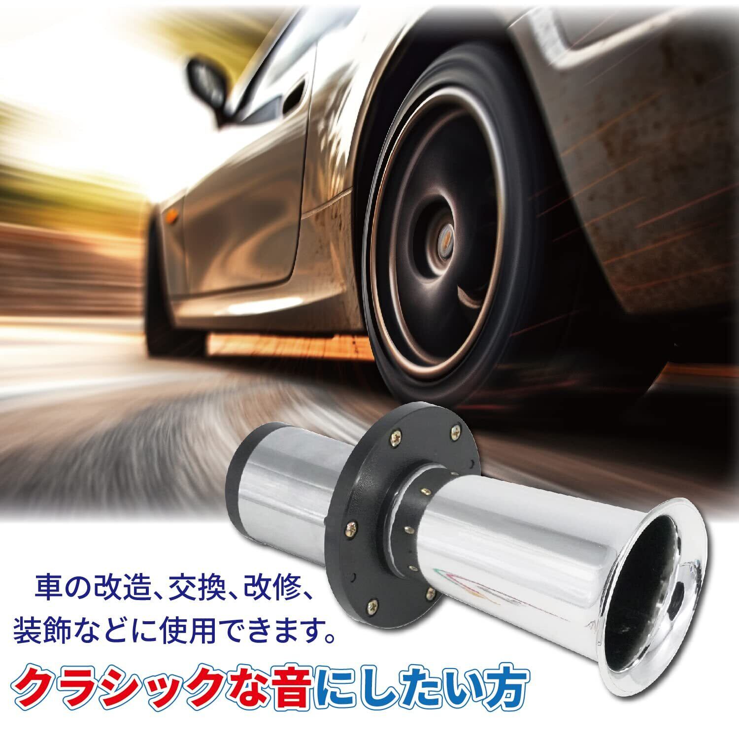 旧車・トラックなどの車、バイクや船まで12Vであればお使いいただけるカーホーンになります。