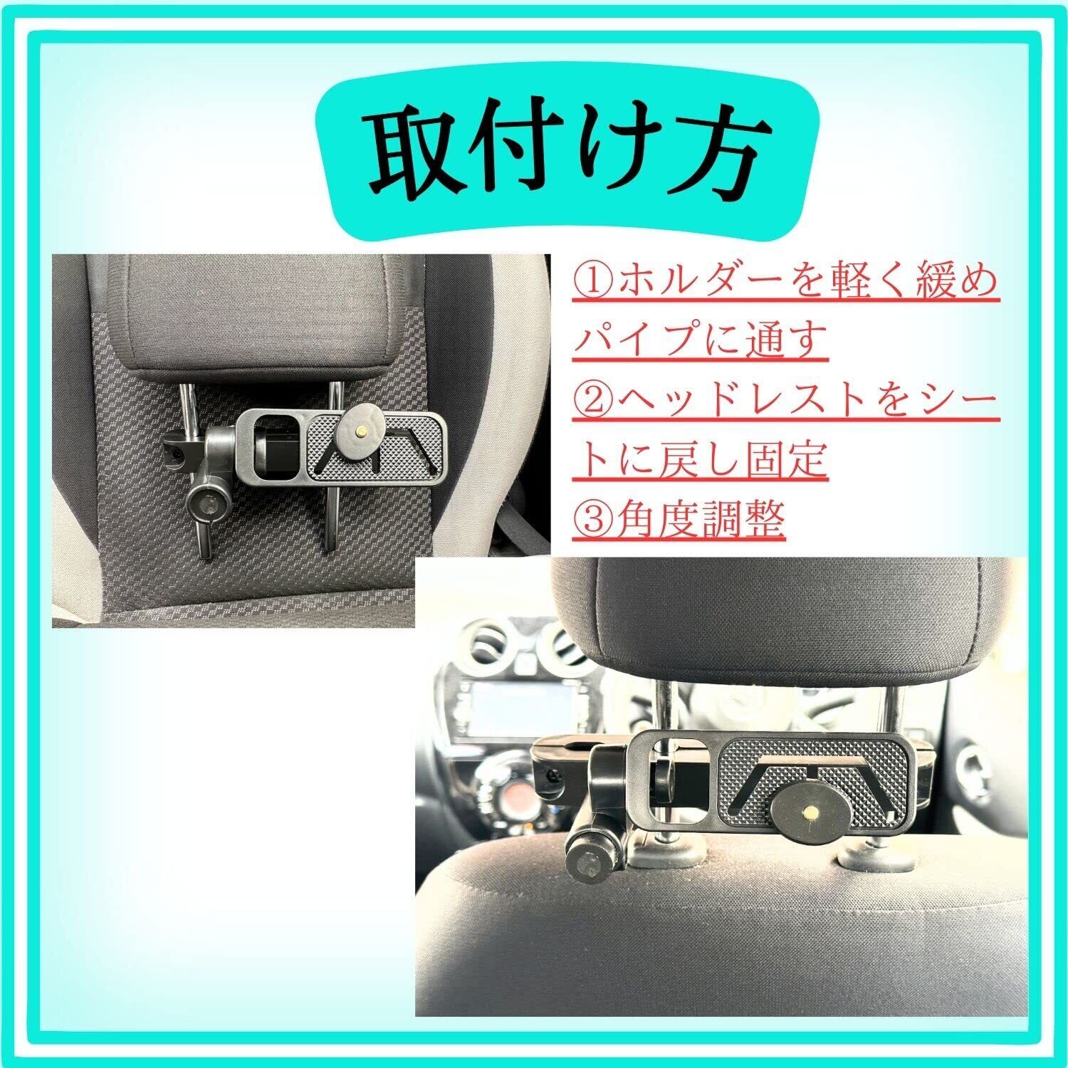 【取り付け簡単】ヘッドレスト車載用ホルダーはプラスドライバー1つで、取付も簡単、しっかり固定できます。