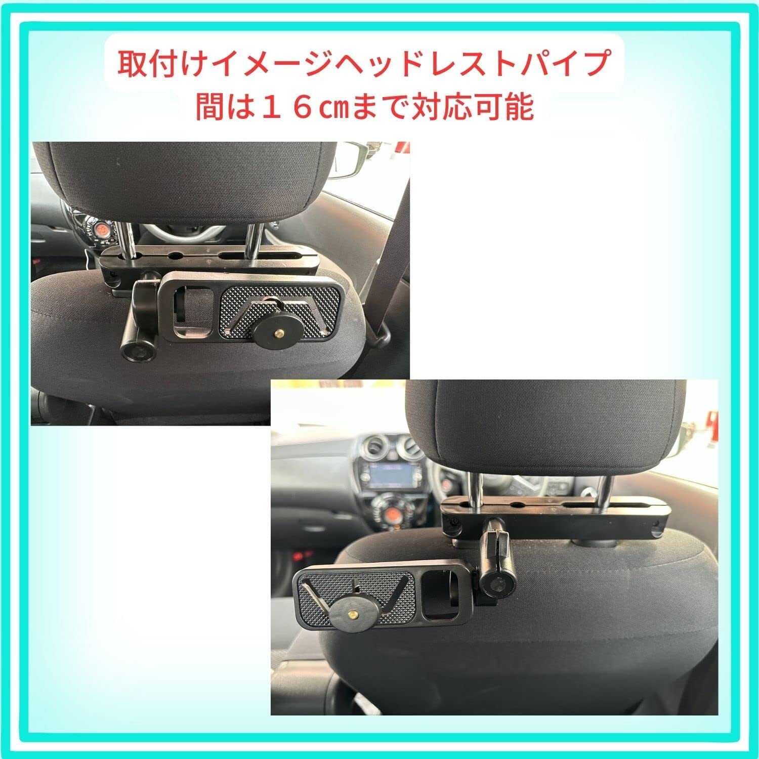 ヘッドレストに取付、角度は自由に調整可能なマルチアングル仕様となります。
