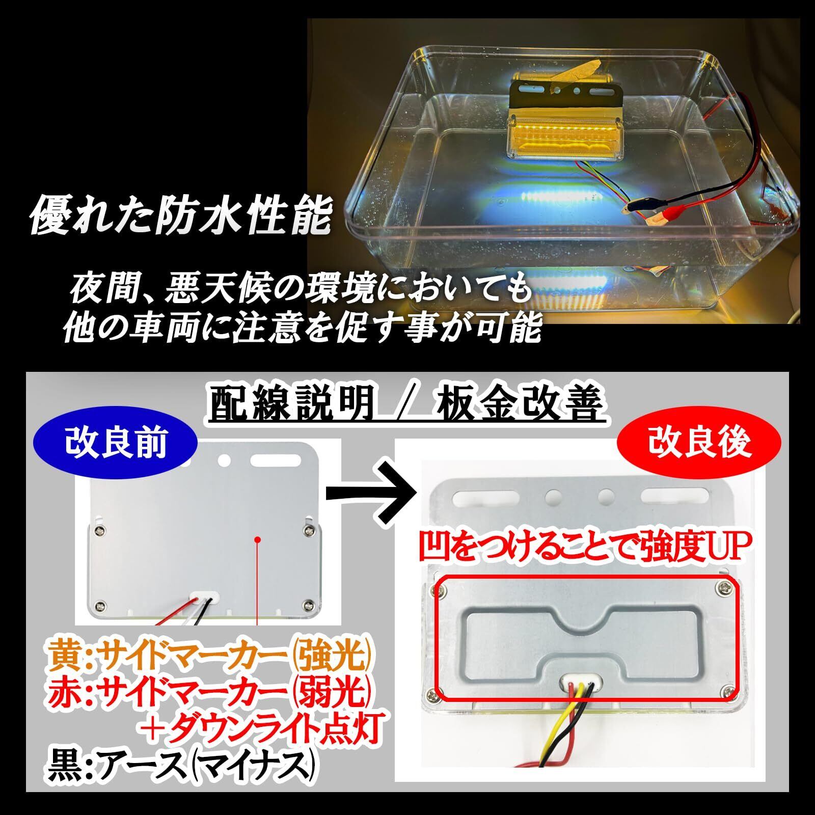 【仕様】マーカーランプ24vトラック用ledはLEDに高輝度COB LEDを採用することにより、夜間、悪天候の環境においても他の車両に注意を促す事が可能です。Iedマーカーランプ24Vの発光部は正面及びサイド、ダウンライトを搭載し広範囲に光を照射し、全方位照射を実現しました。