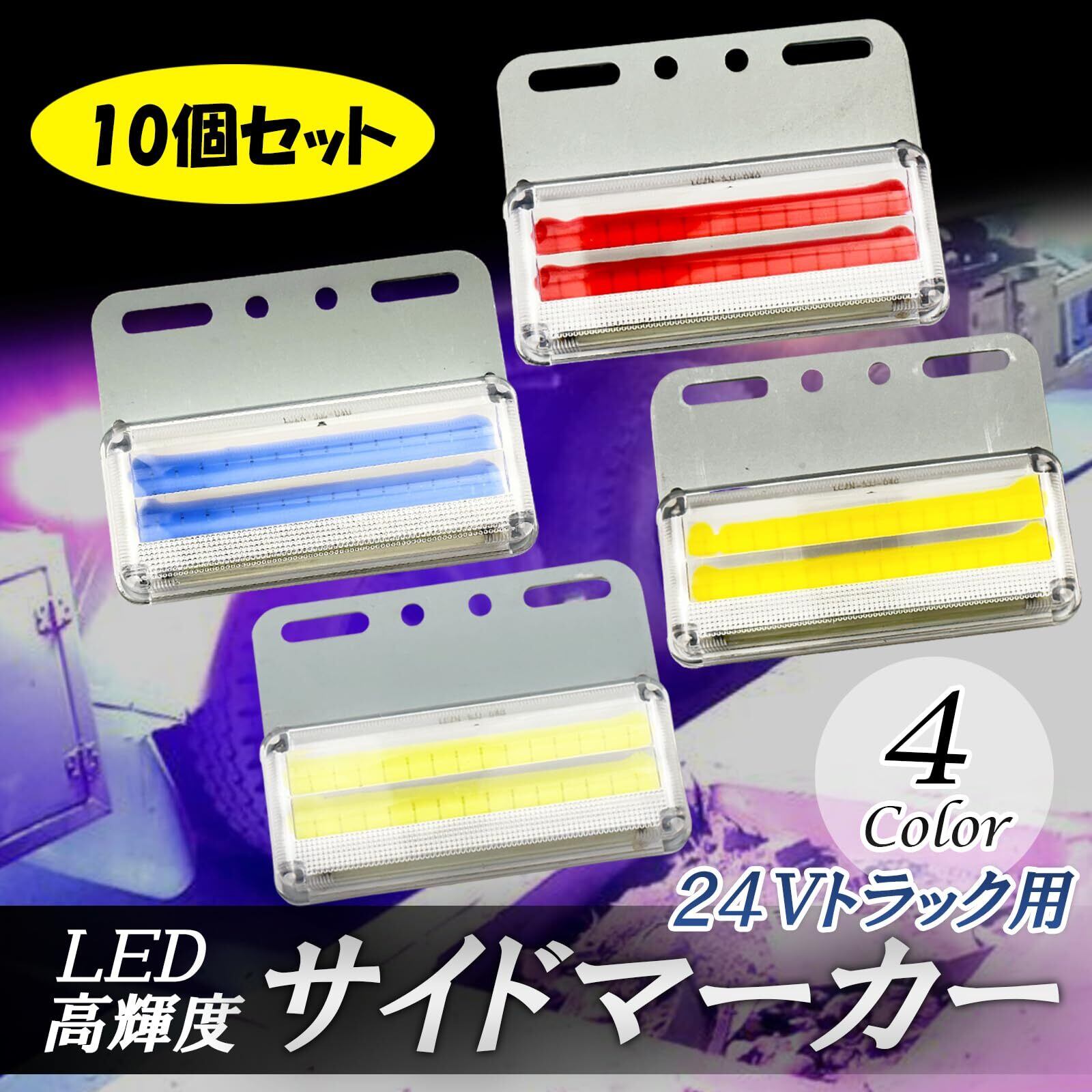 【種類・セット内容】超高輝度ダウンライトを搭載した24Vサイドマーカー10個セットを各ブルー・ホワイト・アンバー・レッドをご用意いたしました、ご要望によりお好きなお色をお選び下さいませ。